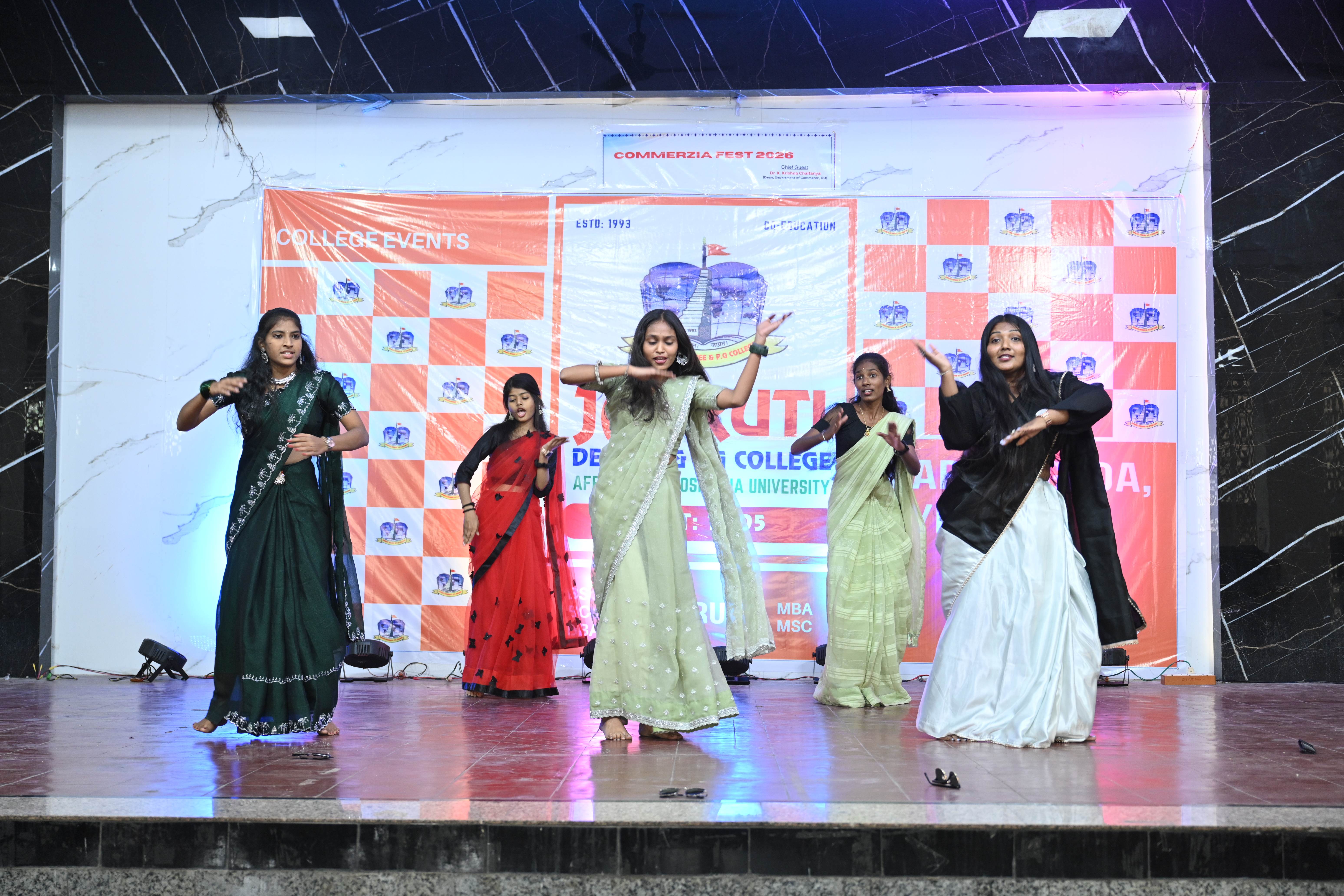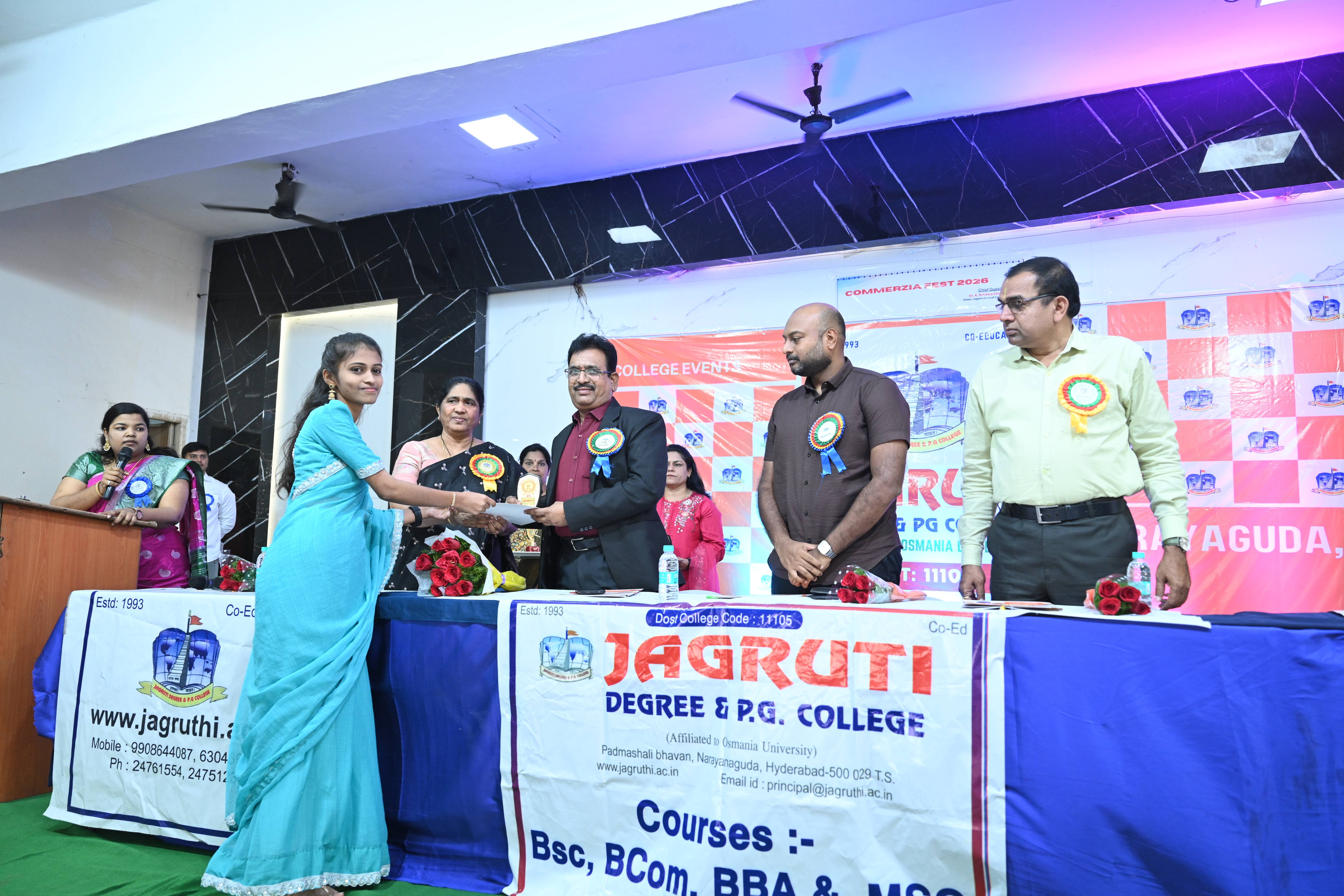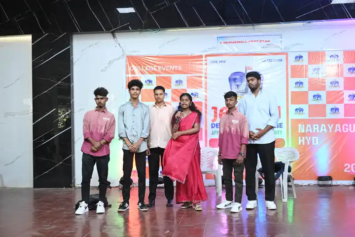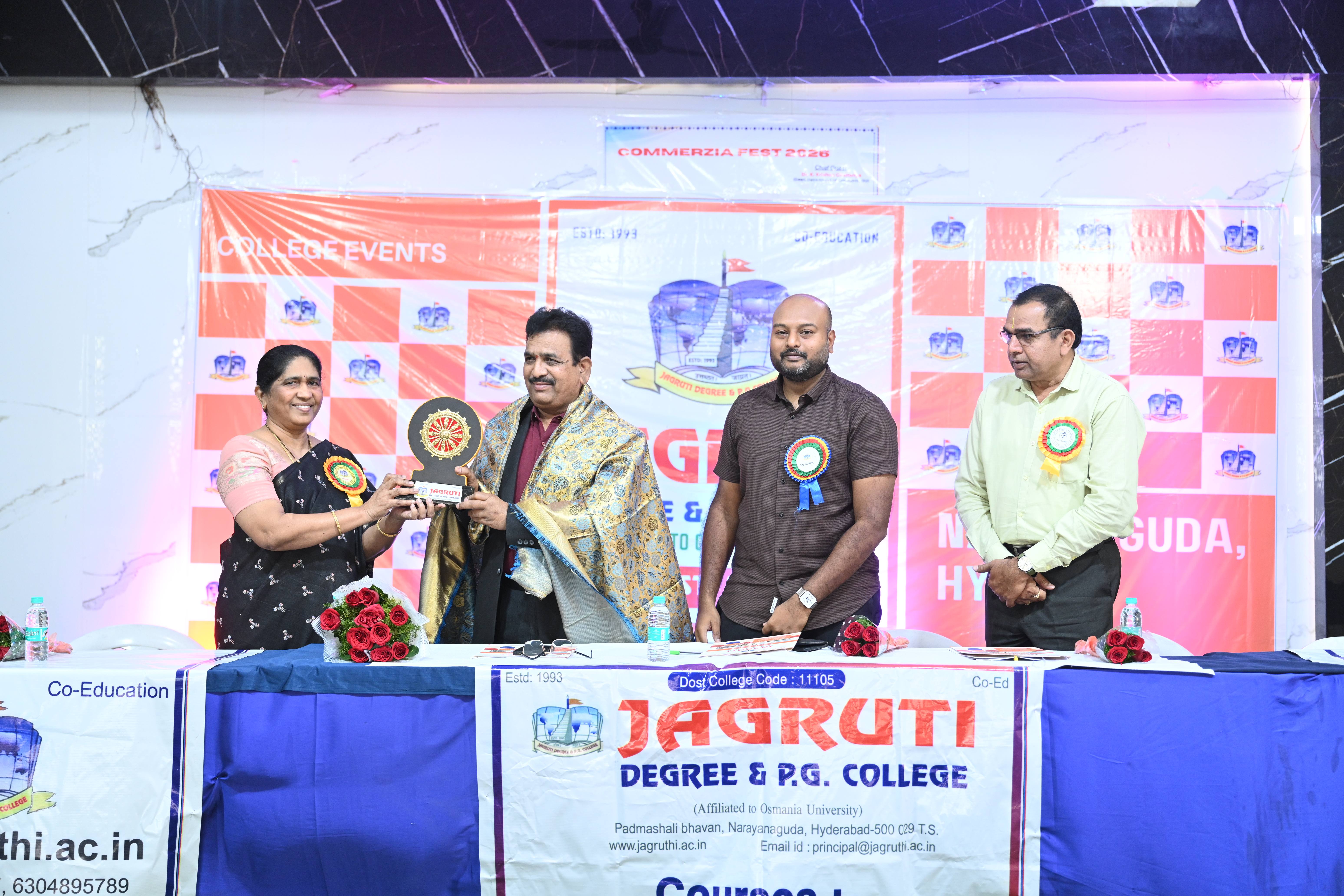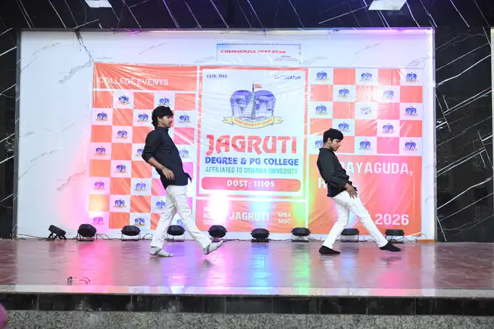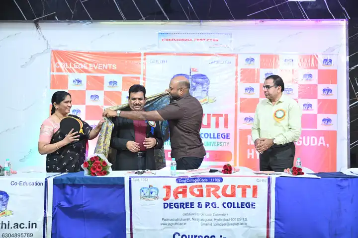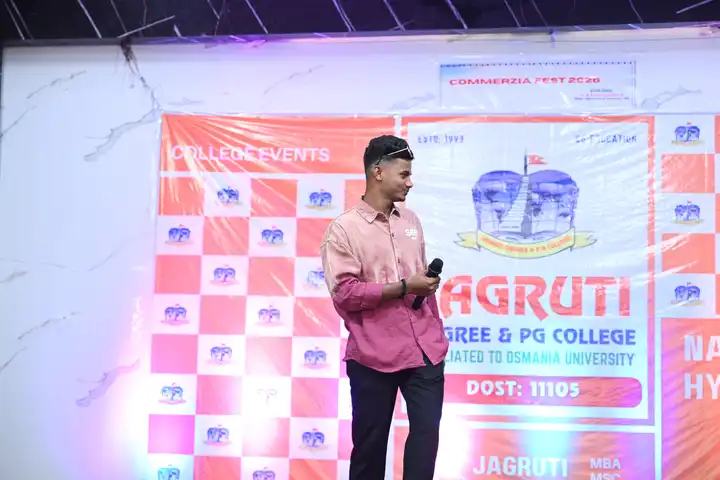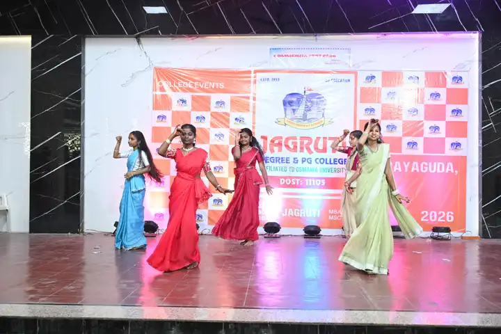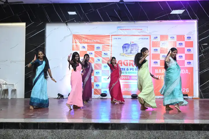 🎉 Fantastic Commerzia Fest hosted by BCom students and staff of Jagruti Degree and PG College on 28th February 2026 at Padmashali Bhavan, Narayanaguda. BCom Students have presented projects and fun activities stalls for the Chief Guest Dr. K. Krishna Chaitanya (Dean, Department of Commerce) and also performed with many dance performances and skits on real world topics.