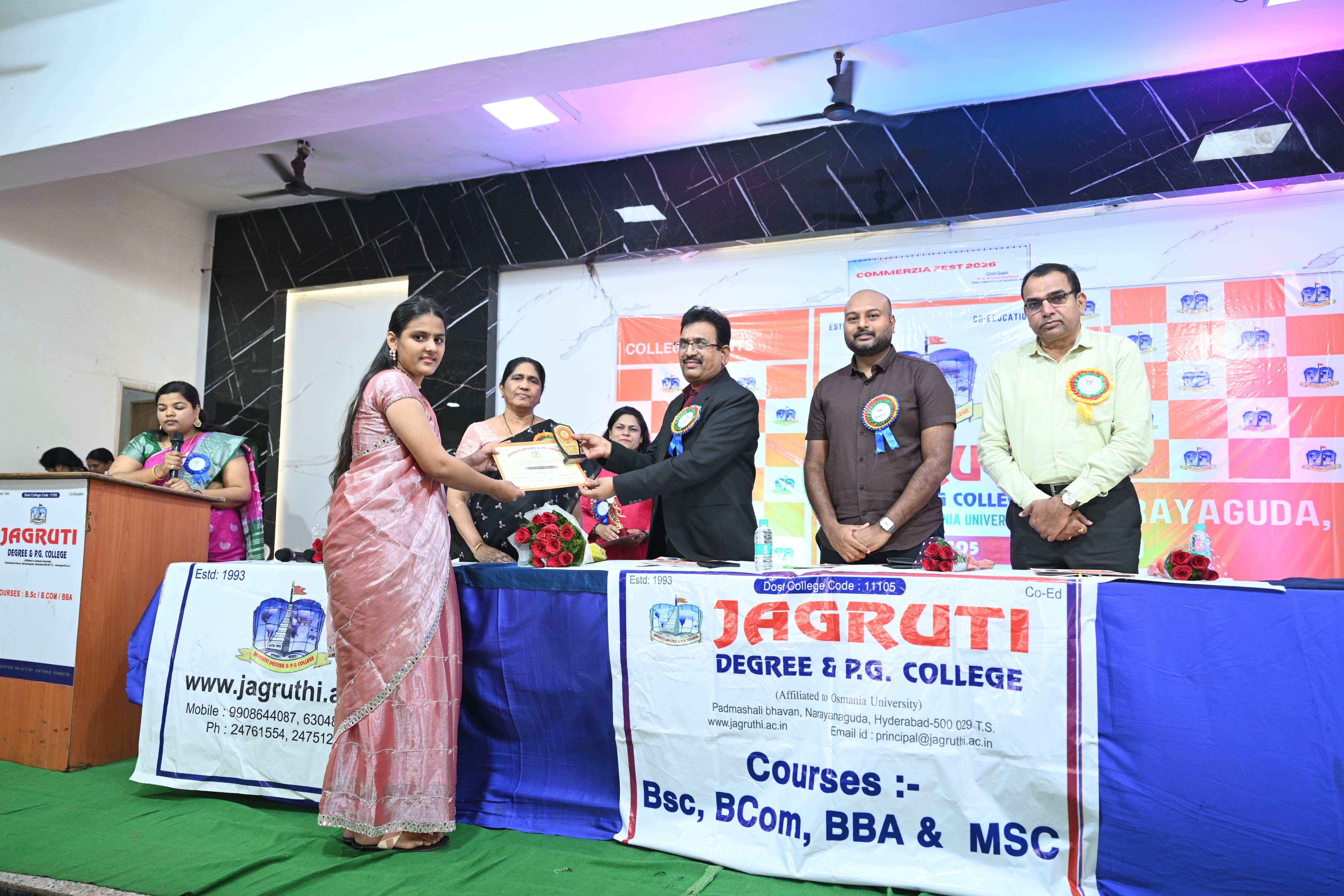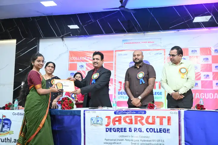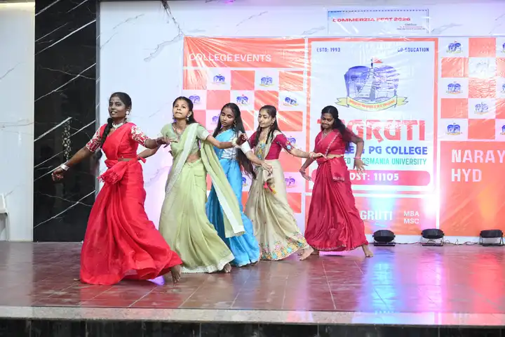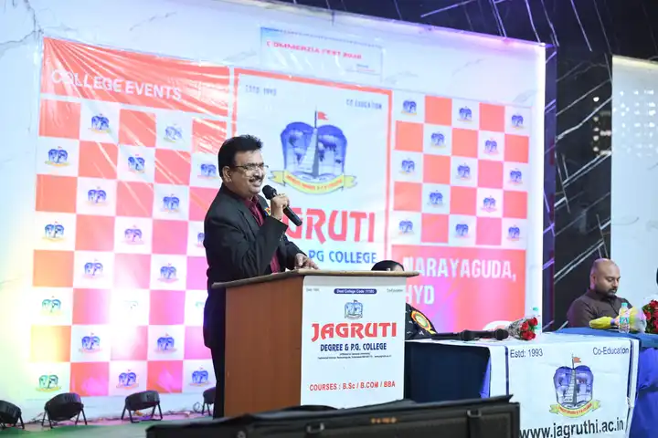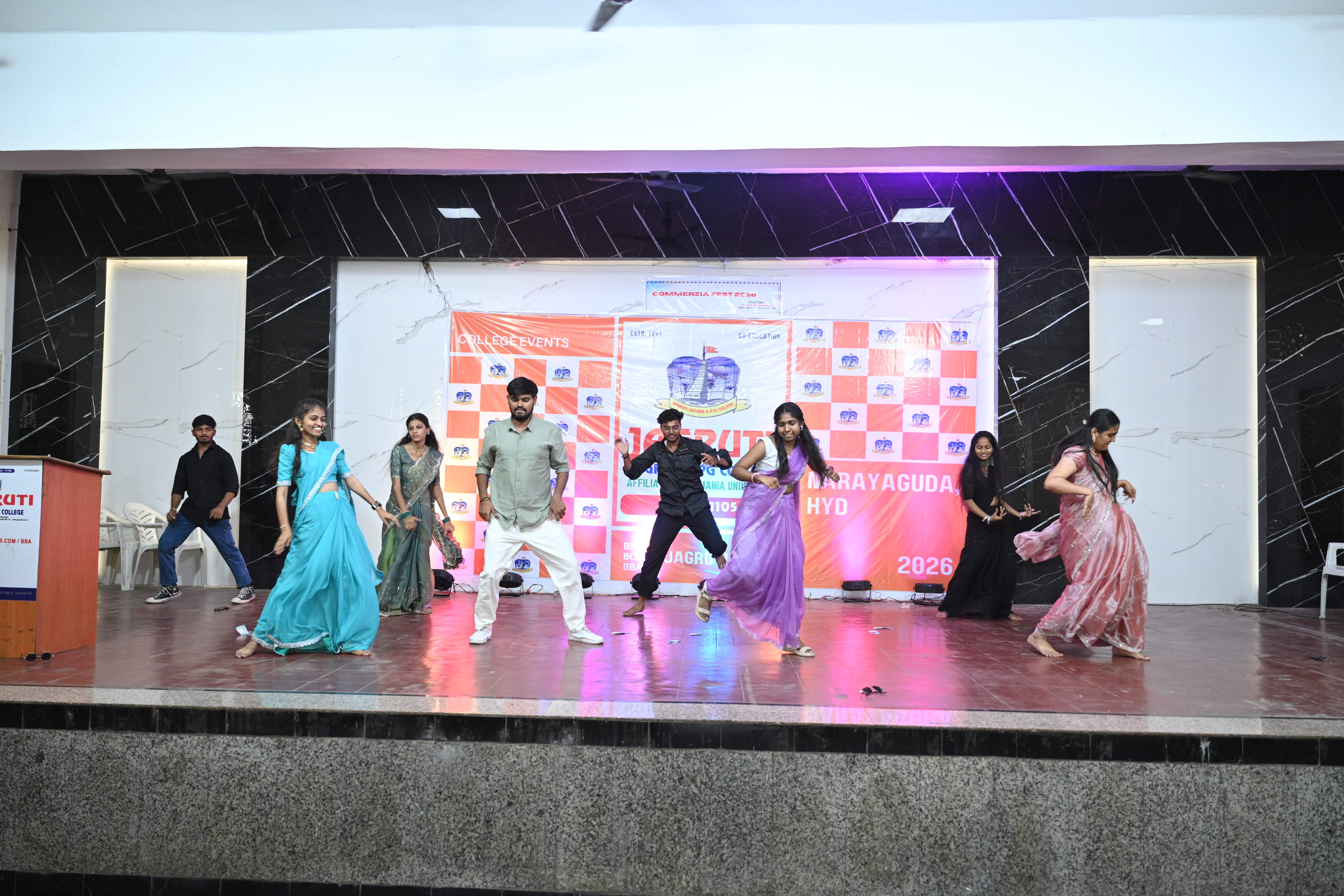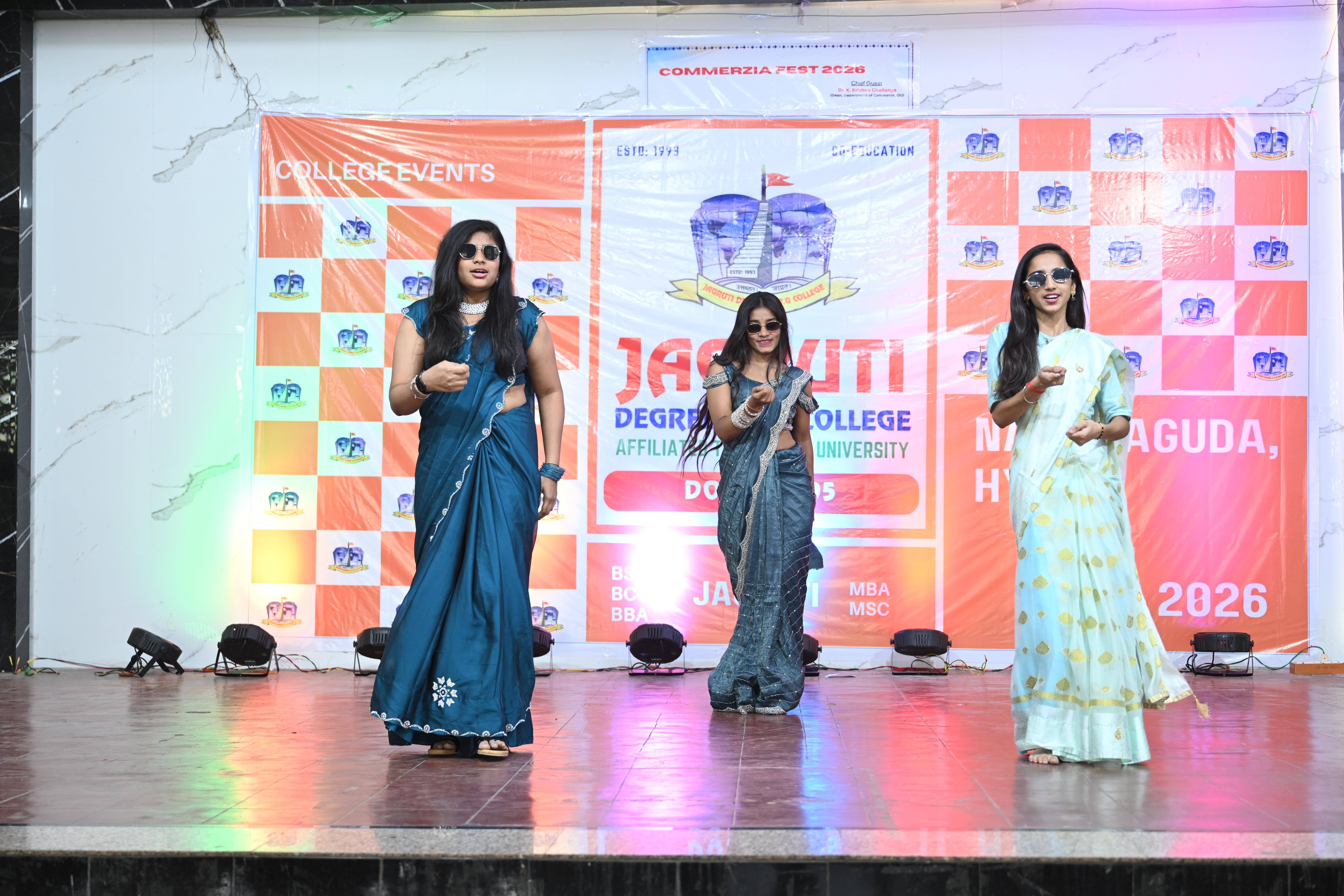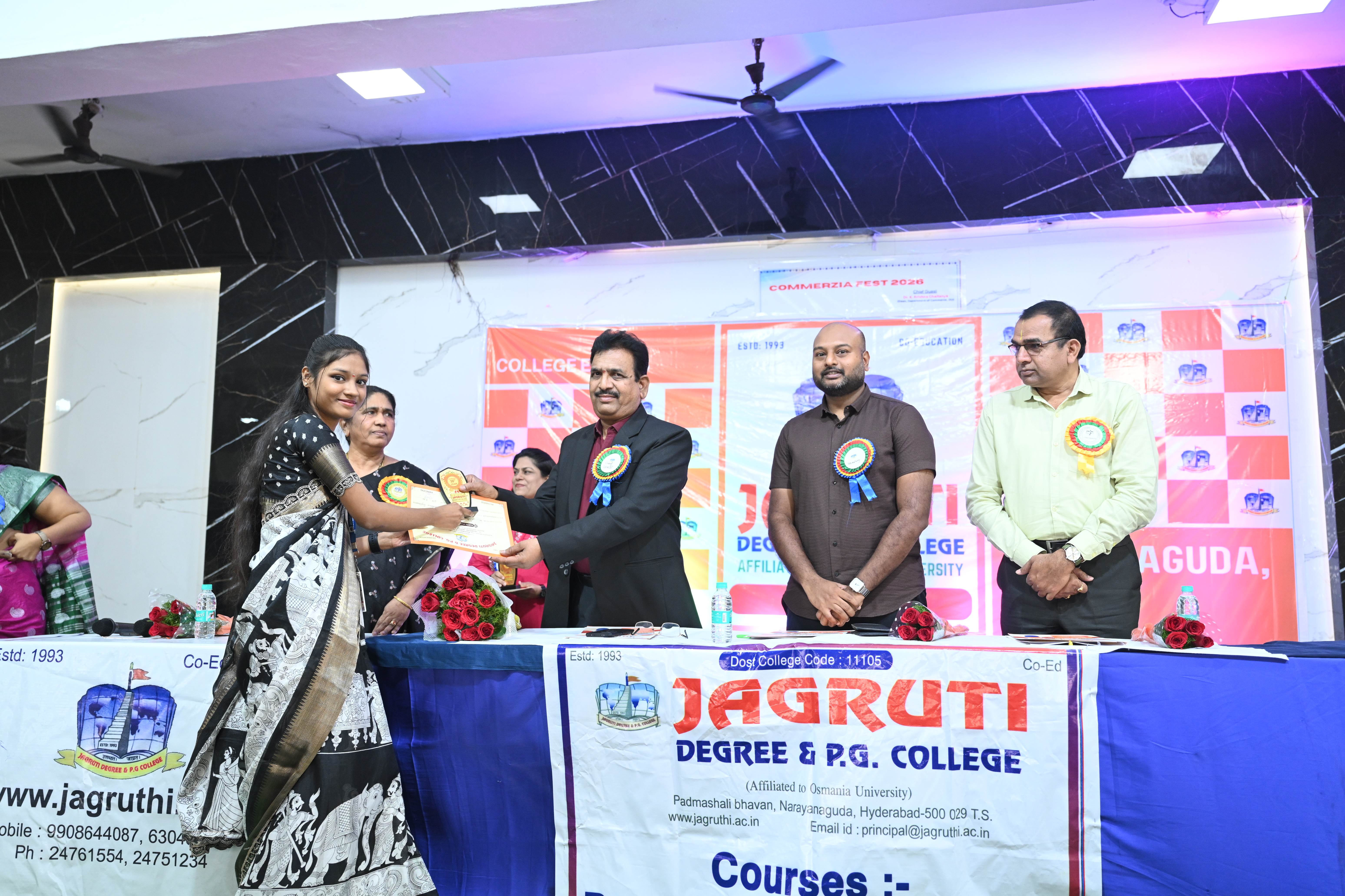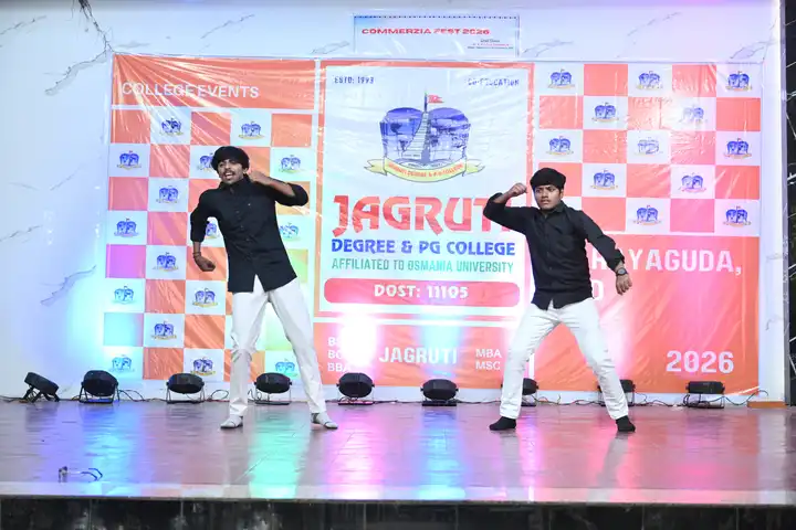 🎉 Fantastic Commerzia Fest hosted by BCom students and staff of Jagruti Degree and PG College on 28th February 2026 at Padmashali Bhavan, Narayanaguda. BCom Students have presented projects and fun activities stalls for the Chief Guest Dr. K. Krishna Chaitanya (Dean, Department of Commerce) and also performed with many dance performances and skits on real world topics.