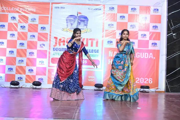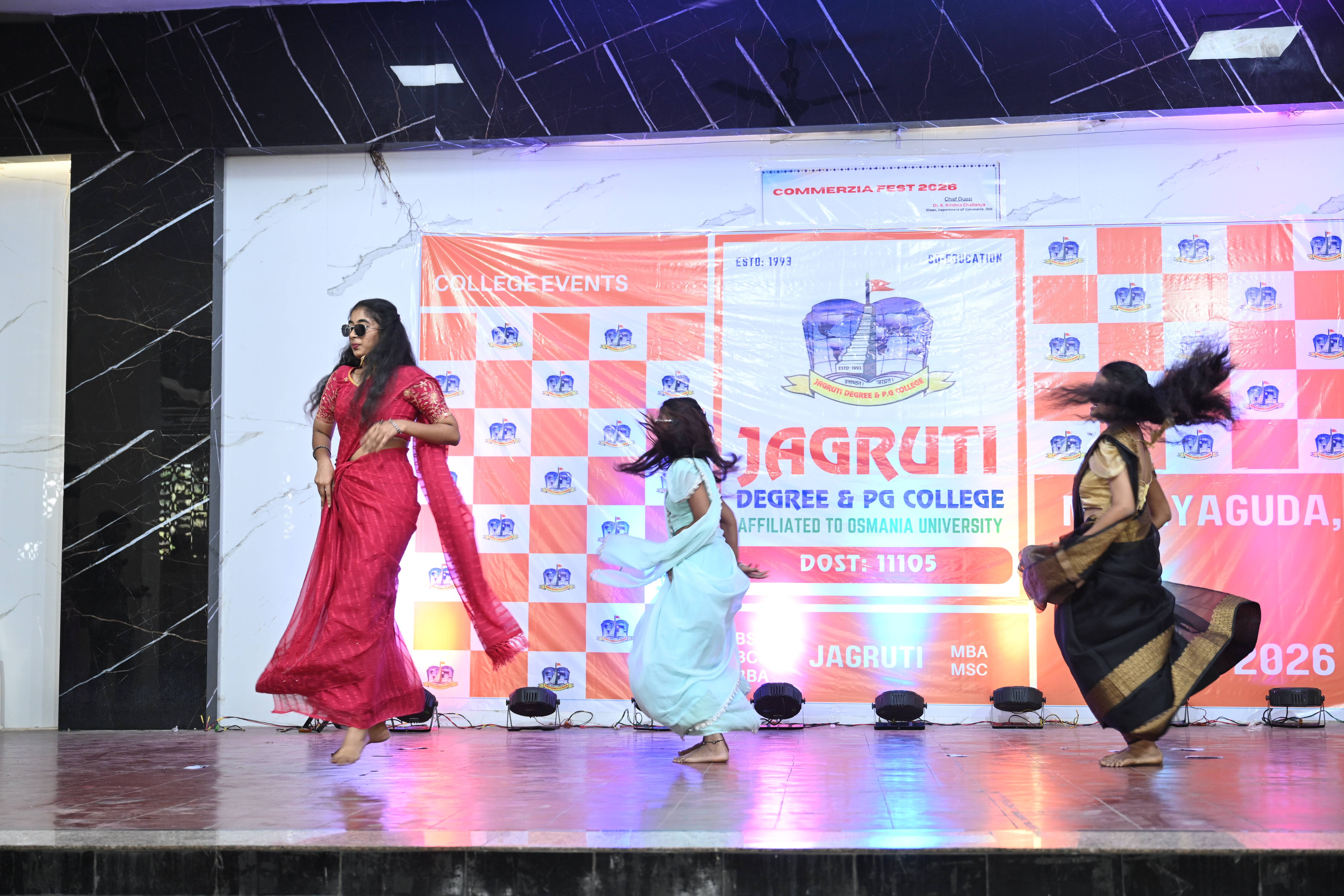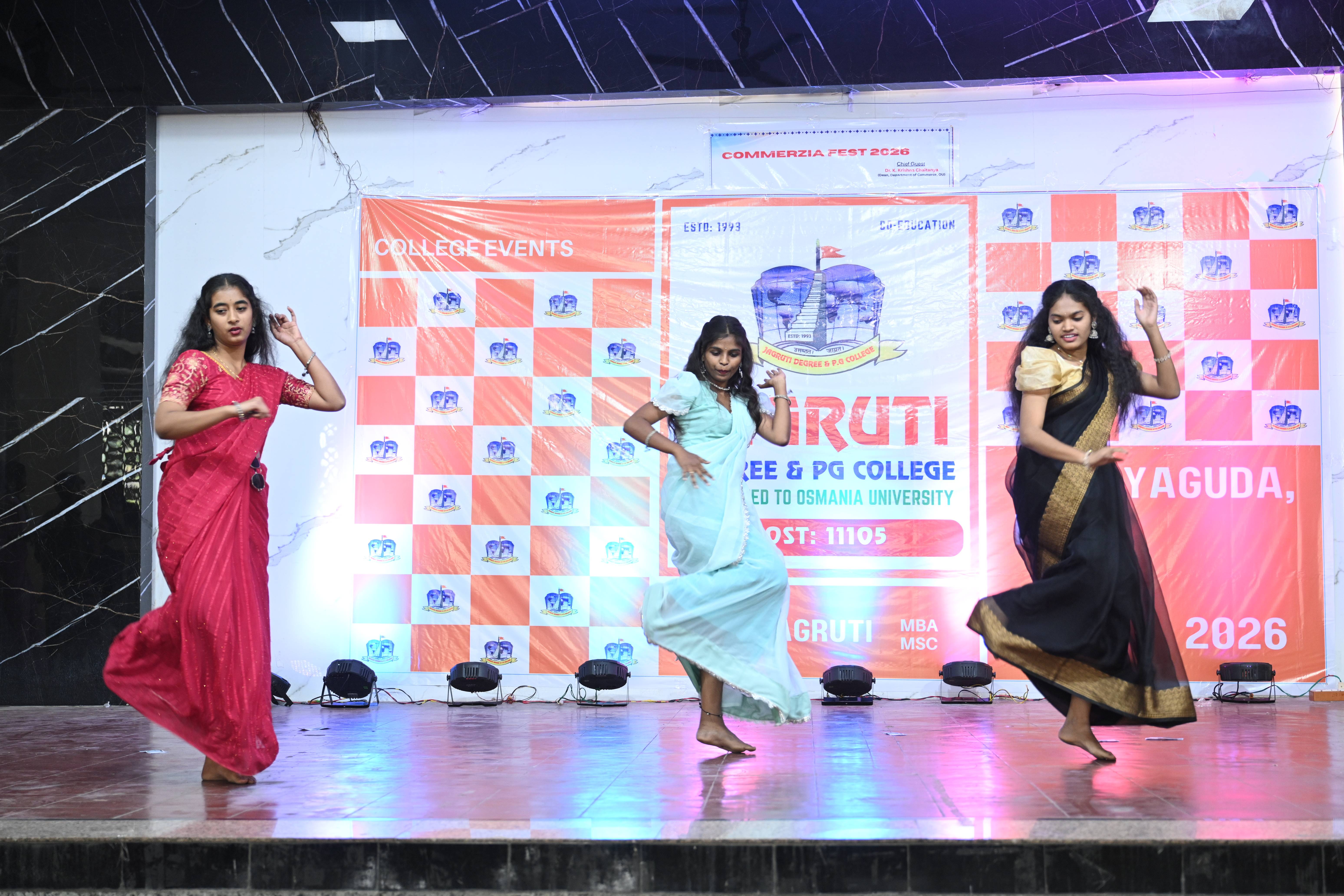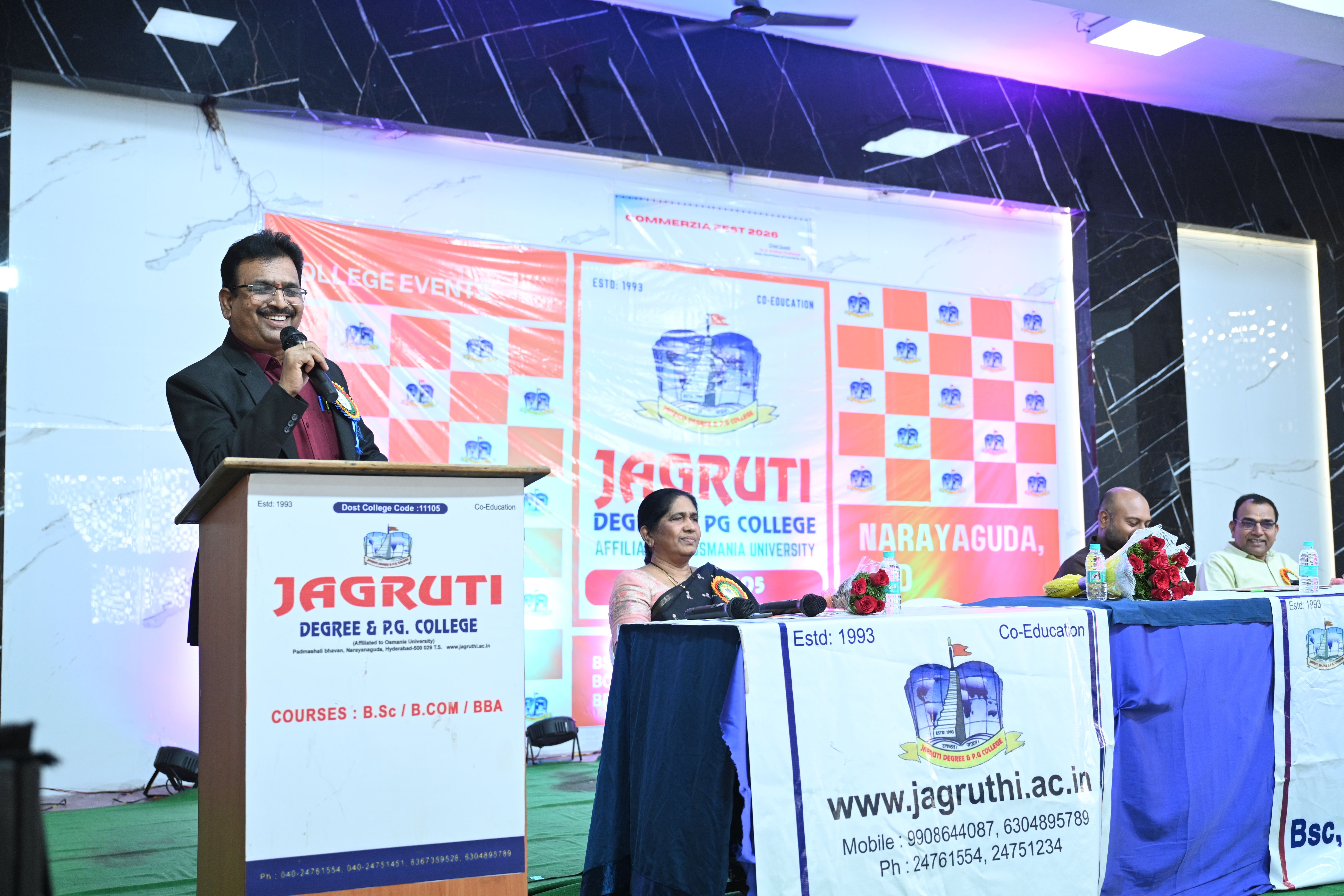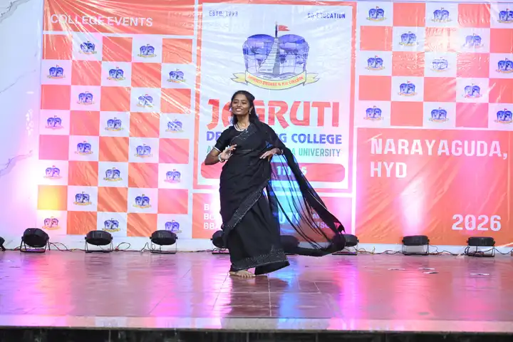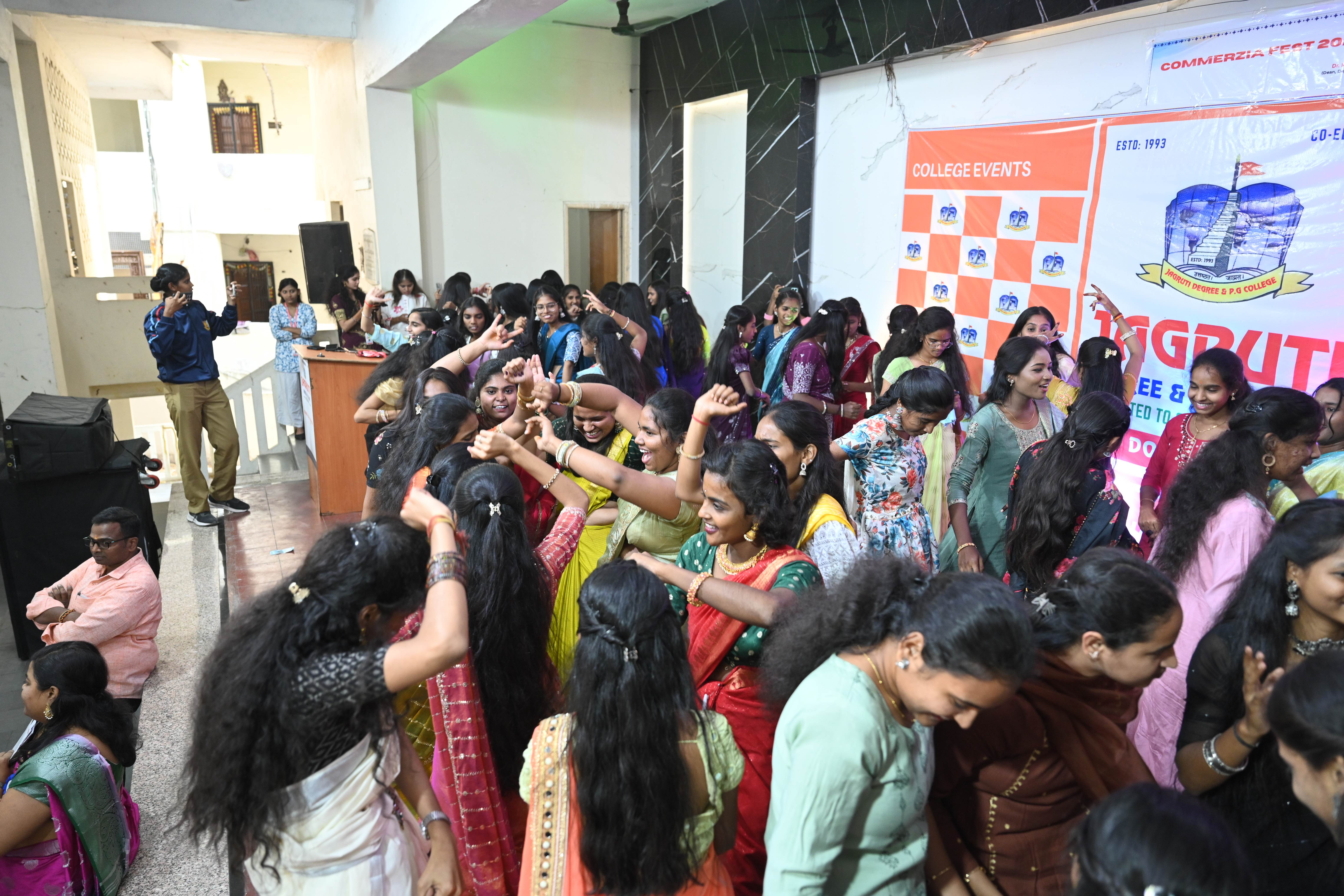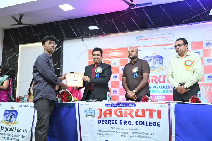 🎉 Fantastic Commerzia Fest hosted by BCom students and staff of Jagruti Degree and PG College on 28th February 2026 at Padmashali Bhavan, Narayanaguda. BCom Students have presented projects and fun activities stalls for the Chief Guest Dr. K. Krishna Chaitanya (Dean, Department of Commerce) and also performed with many dance performances and skits on real world topics.