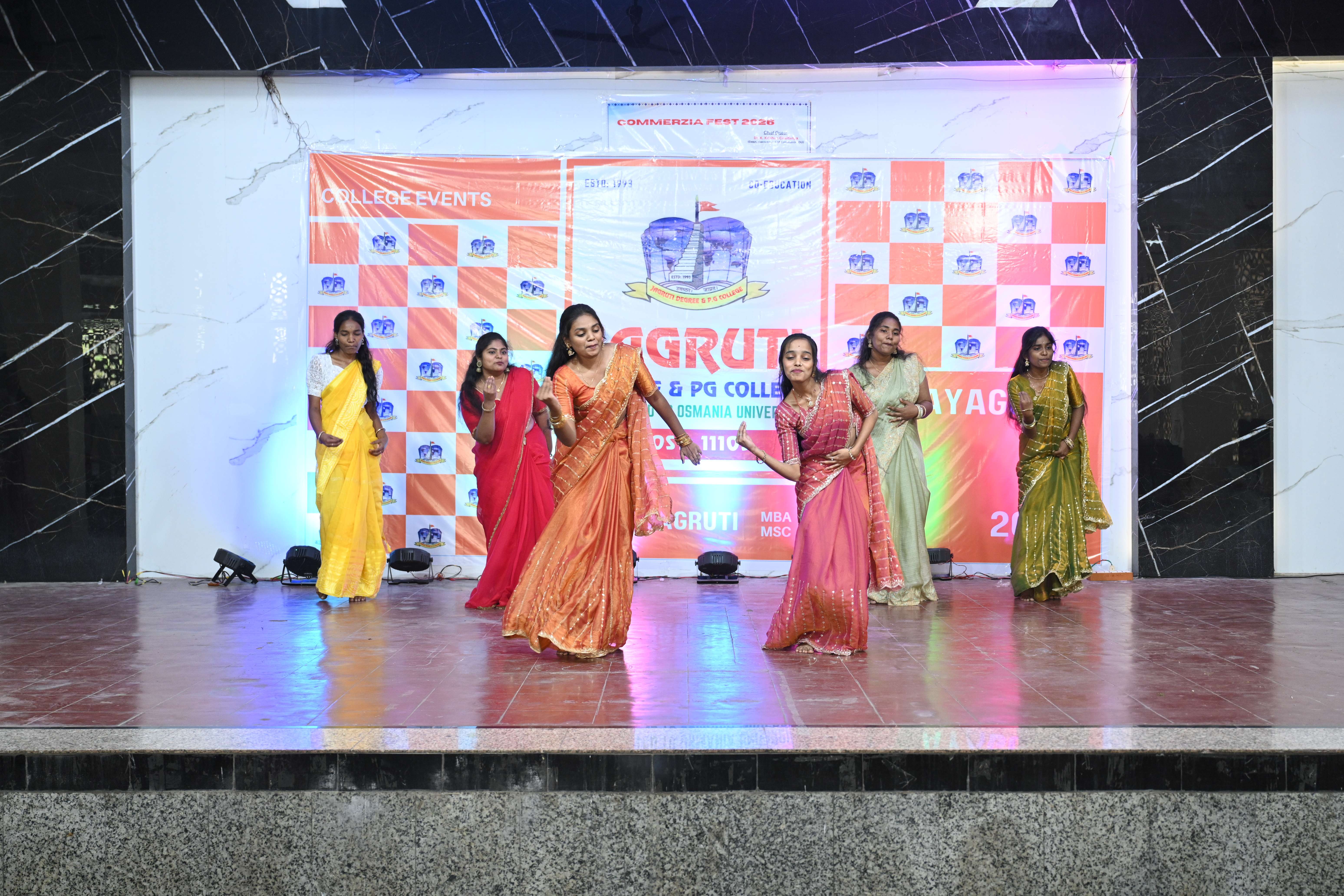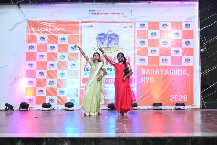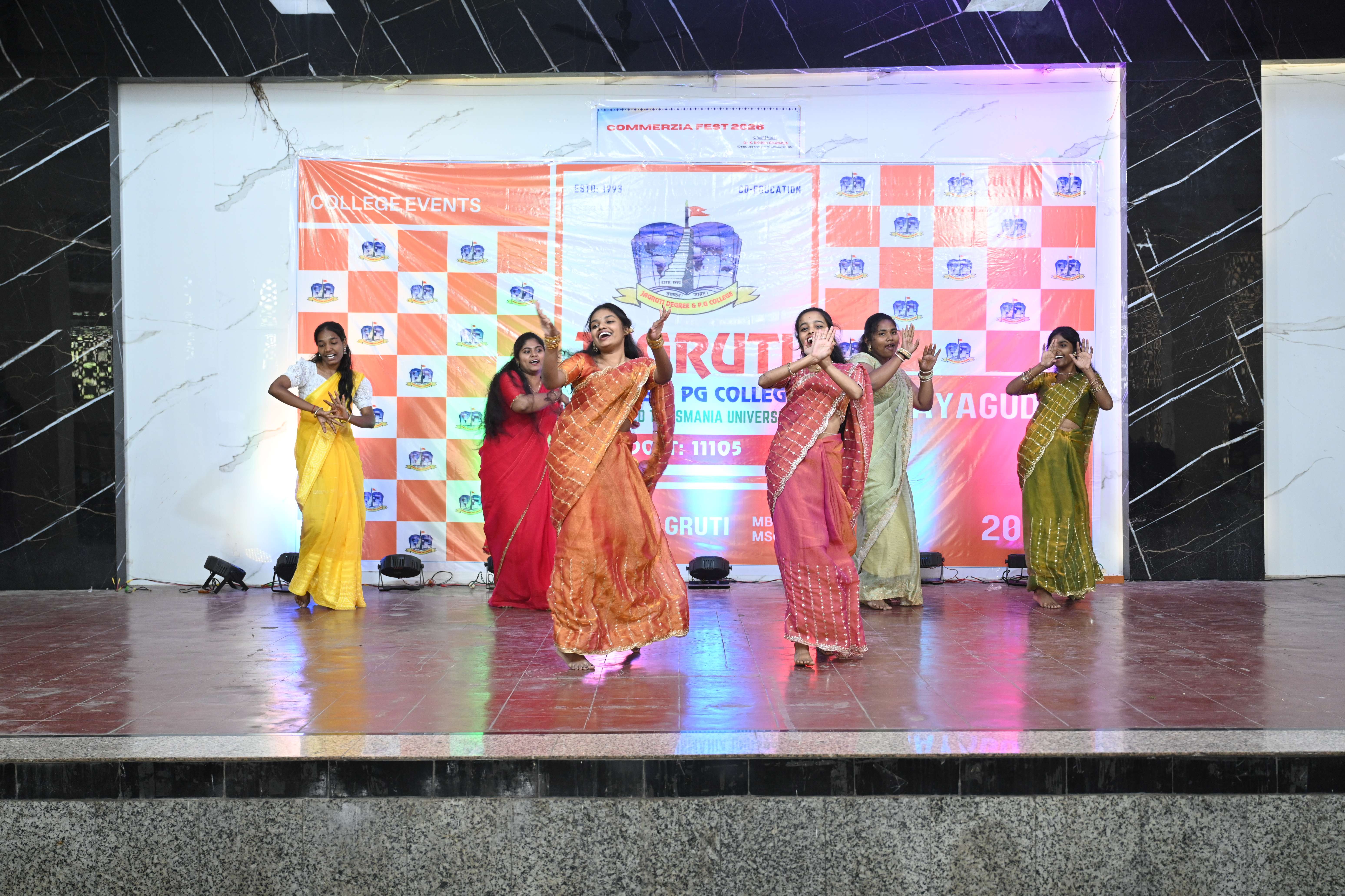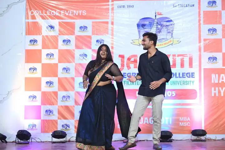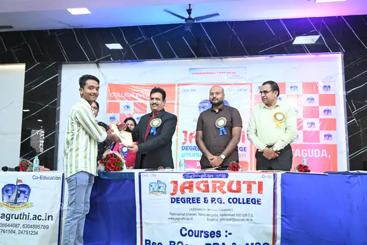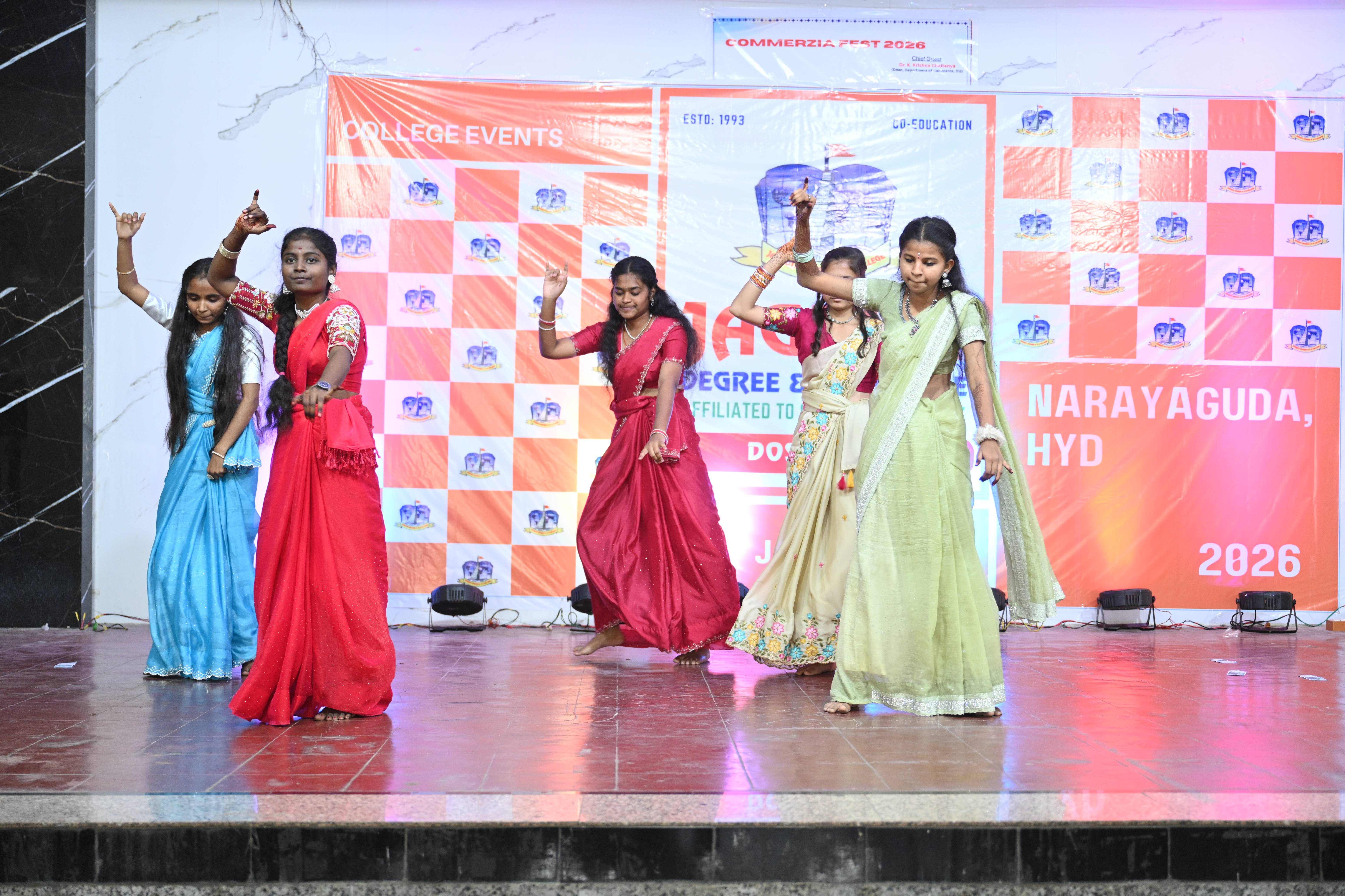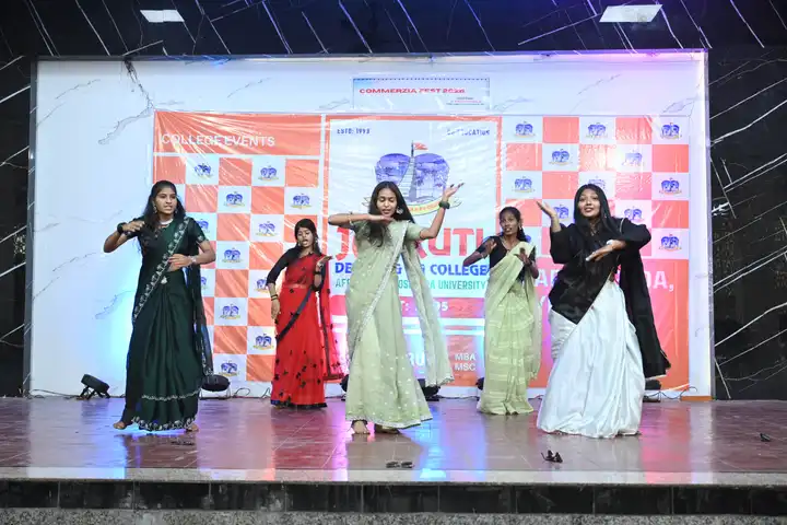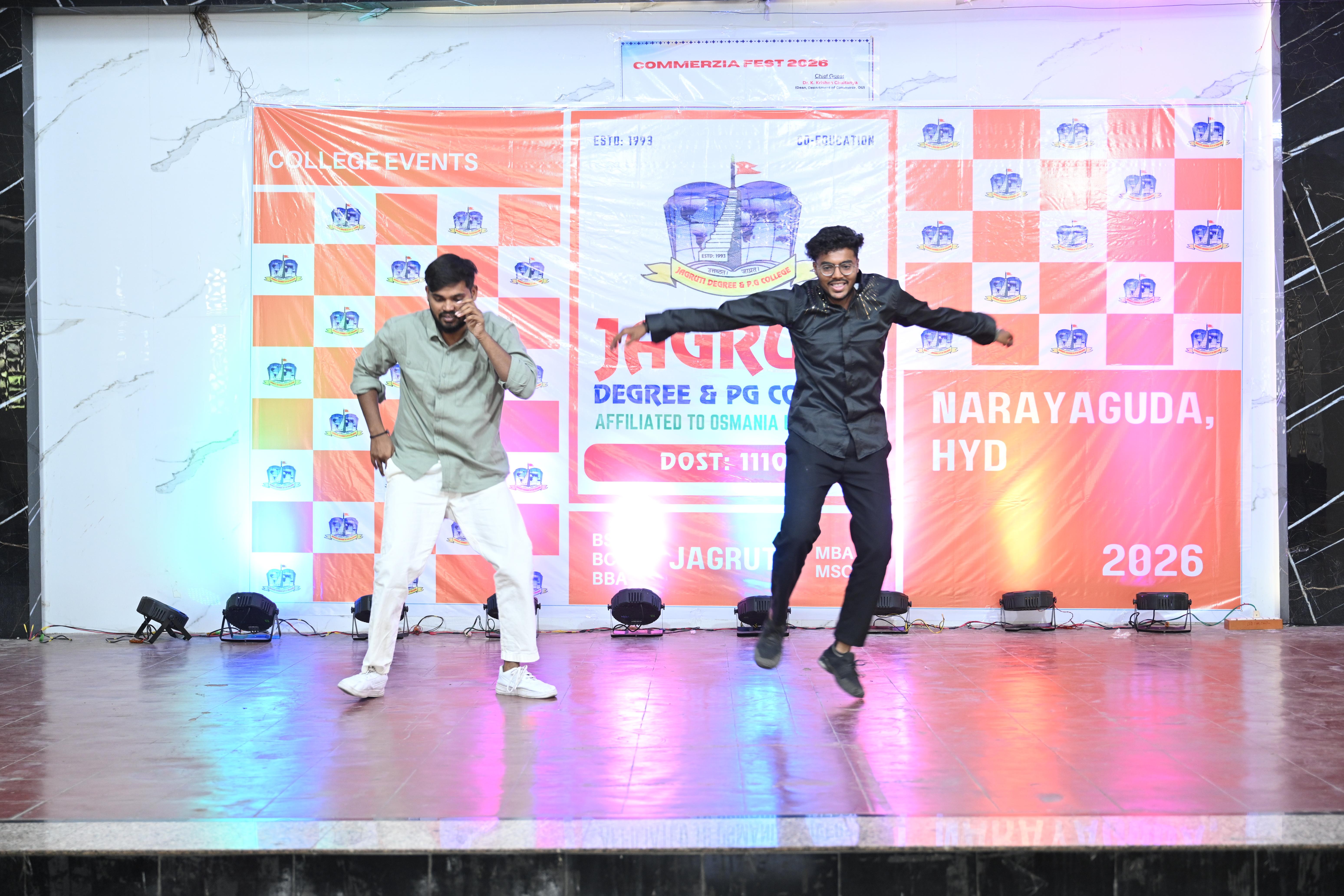 🎉 Fantastic Commerzia Fest hosted by BCom students and staff of Jagruti Degree and PG College on 28th February 2026 at Padmashali Bhavan, Narayanaguda. BCom Students have presented projects and fun activities stalls for the Chief Guest Dr. K. Krishna Chaitanya (Dean, Department of Commerce) and also performed with many dance performances and skits on real world topics.