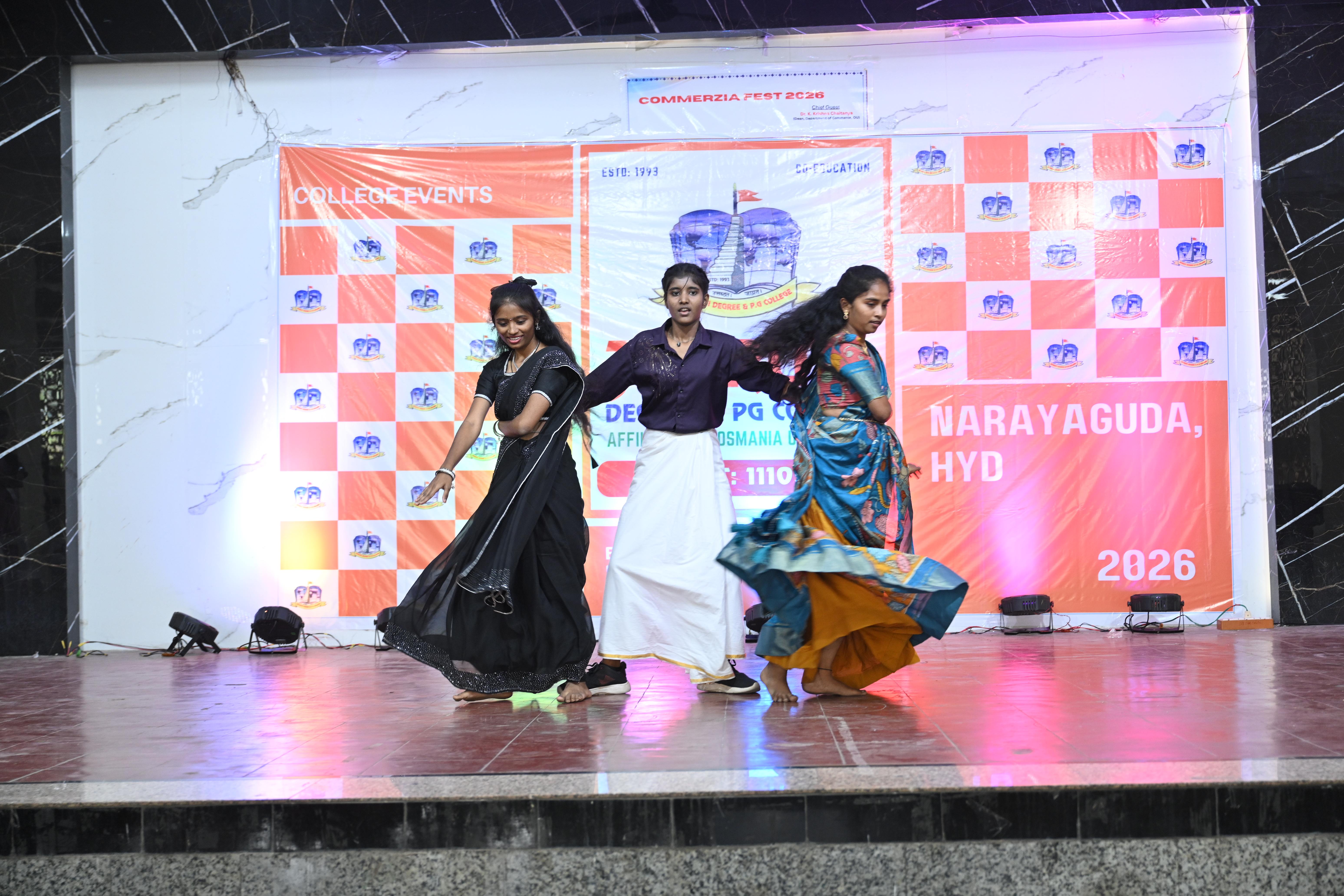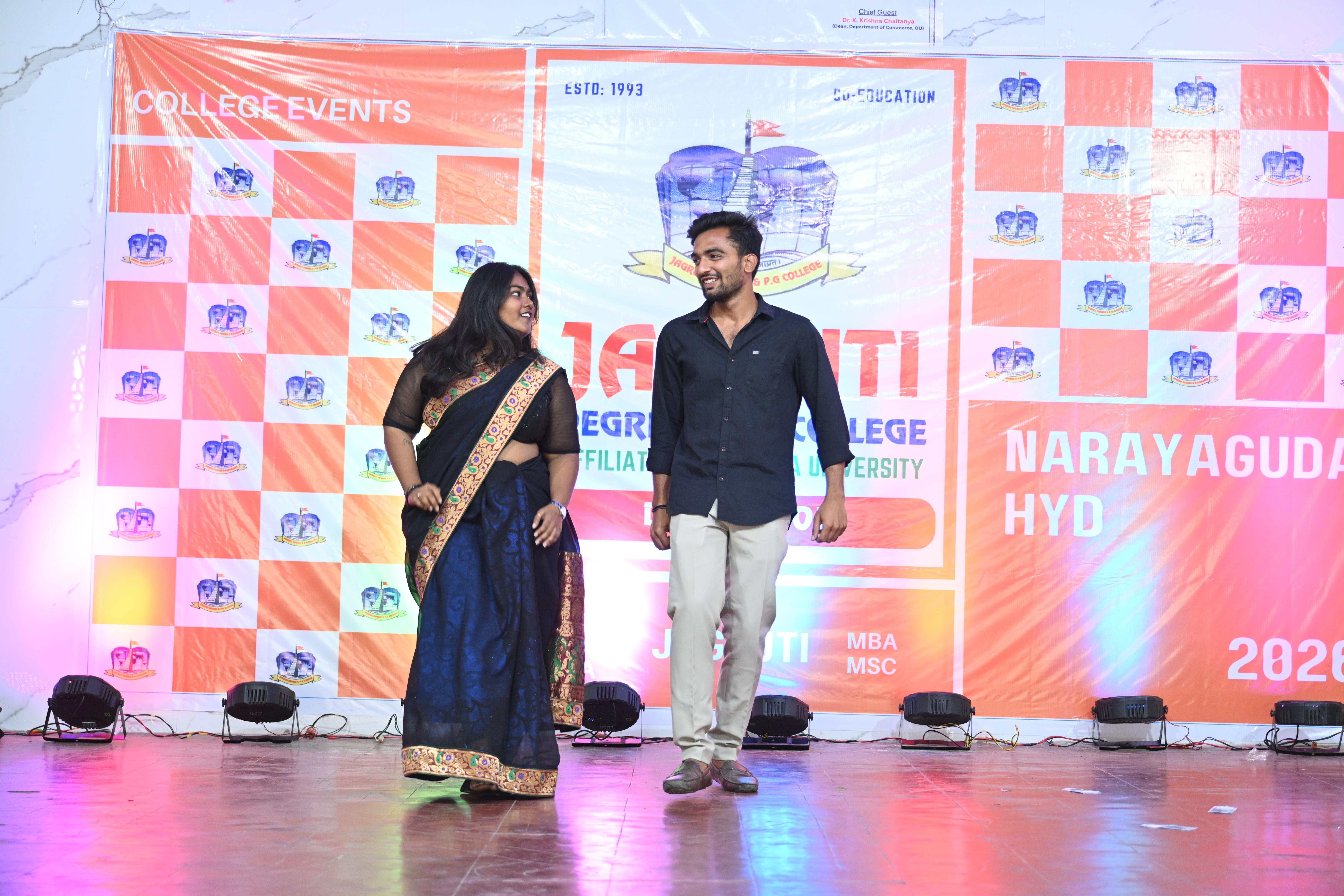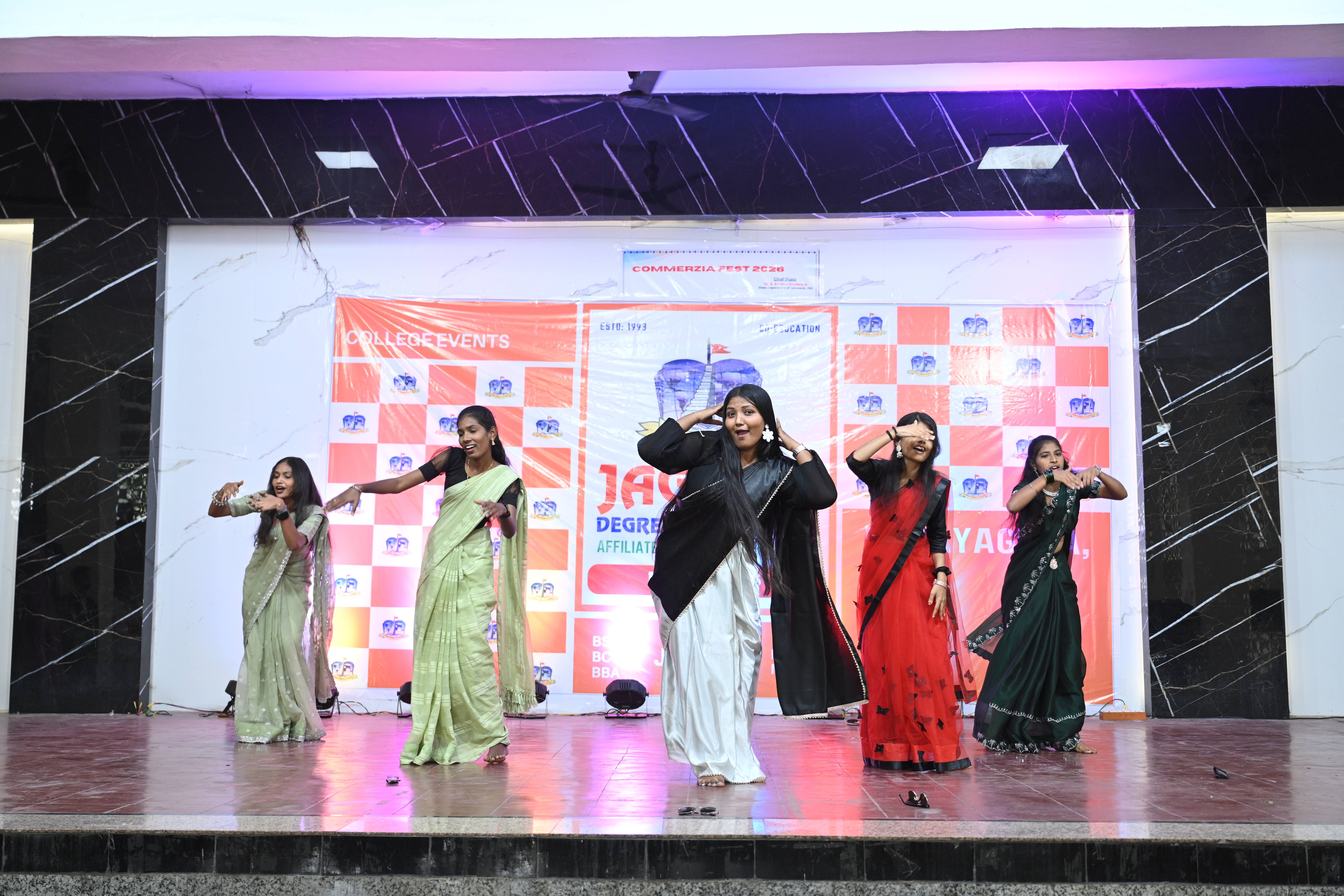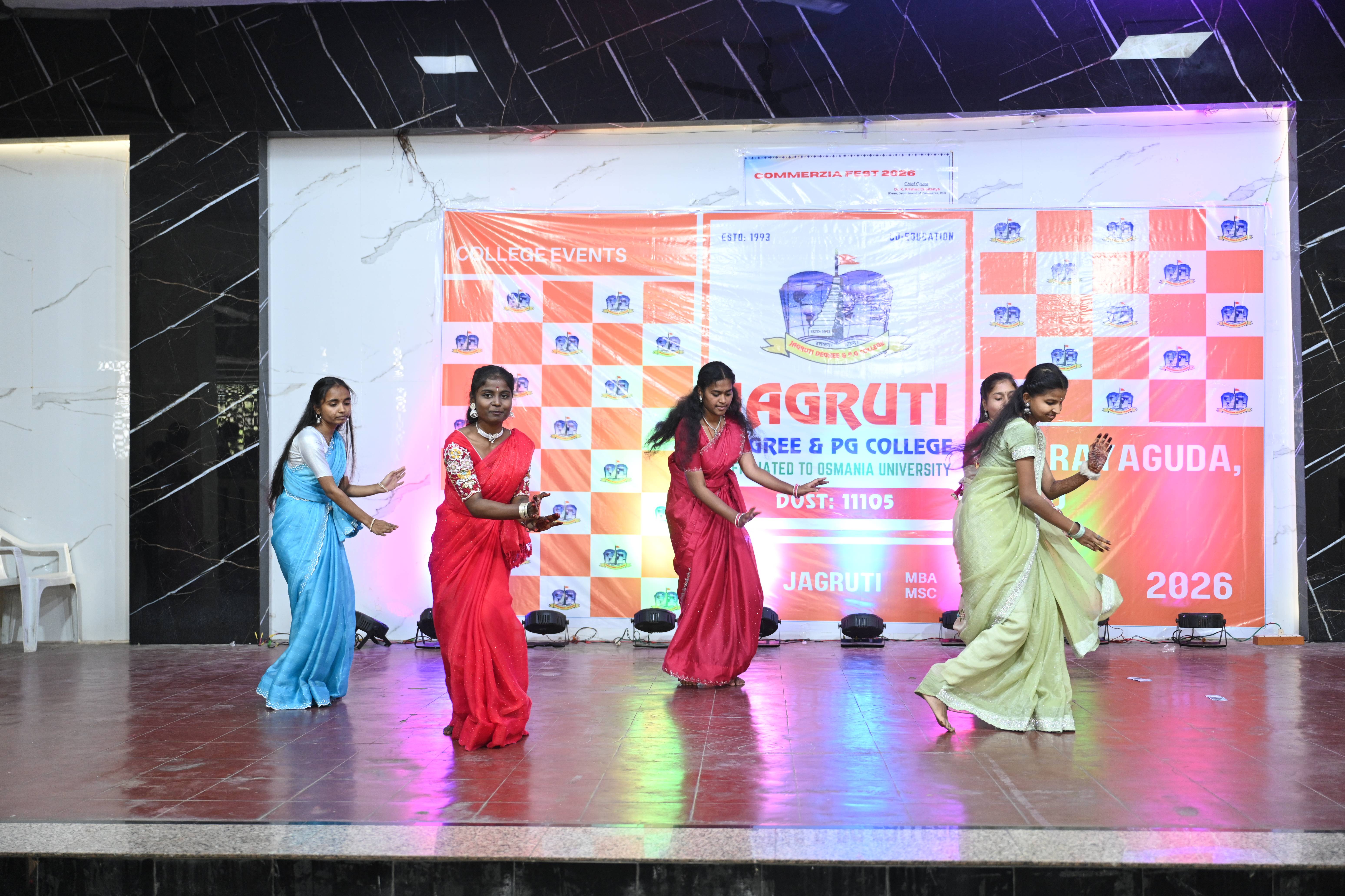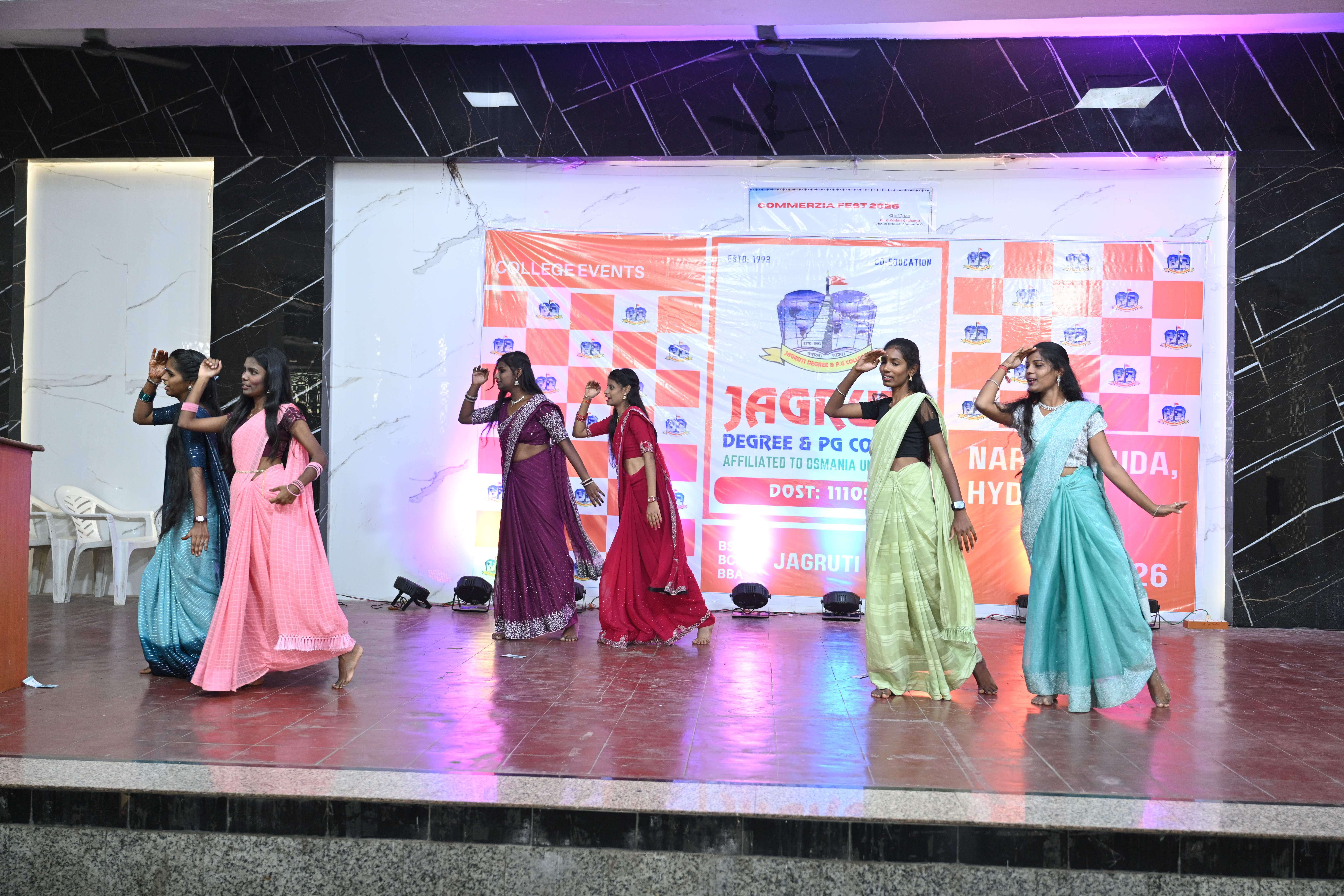 🎉 Fantastic Commerzia Fest hosted by BCom students and staff of Jagruti Degree and PG College on 28th February 2026 at Padmashali Bhavan, Narayanaguda. BCom Students have presented projects and fun activities stalls for the Chief Guest Dr. K. Krishna Chaitanya (Dean, Department of Commerce) and also performed with many dance performances and skits on real world topics.