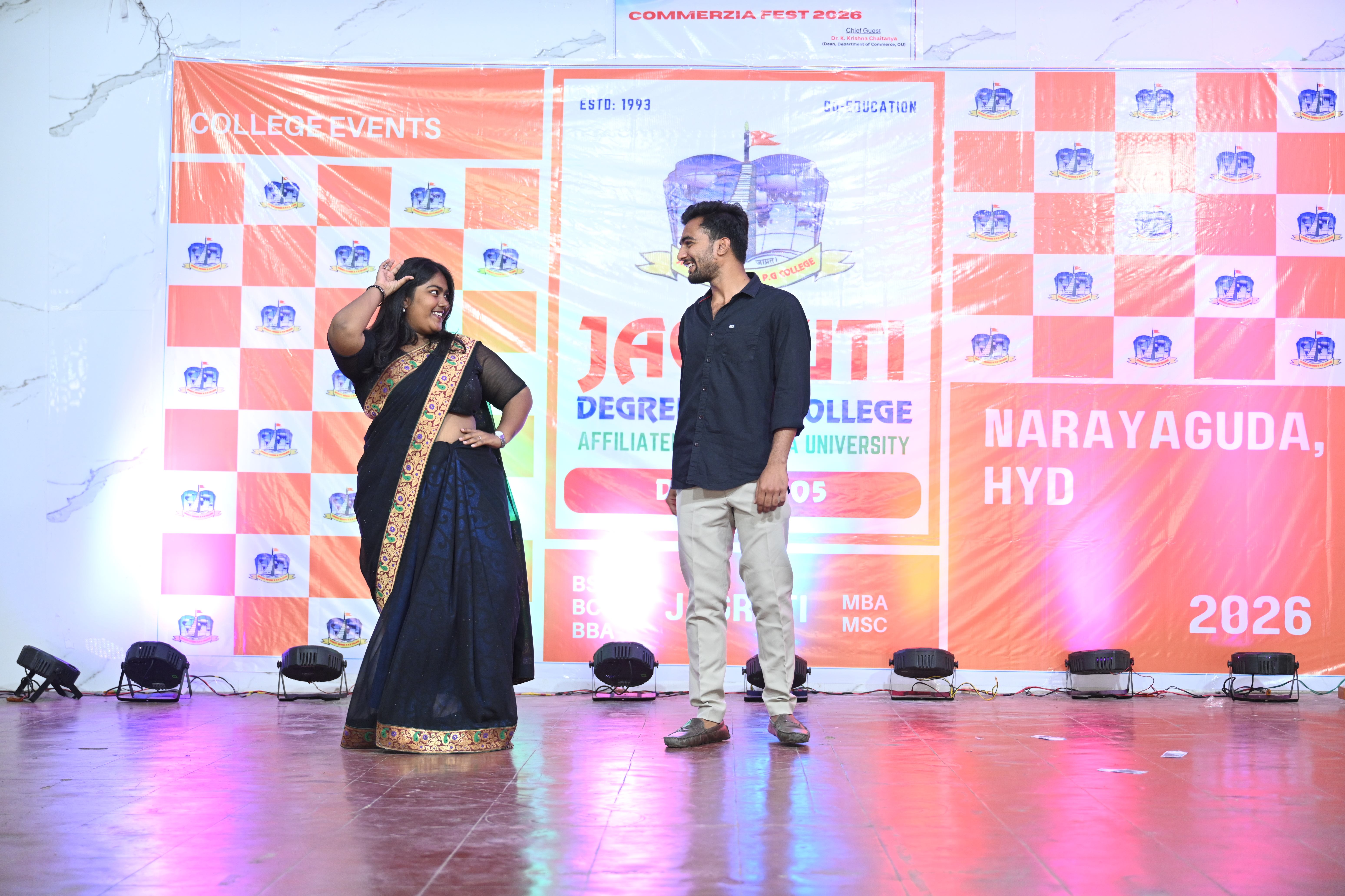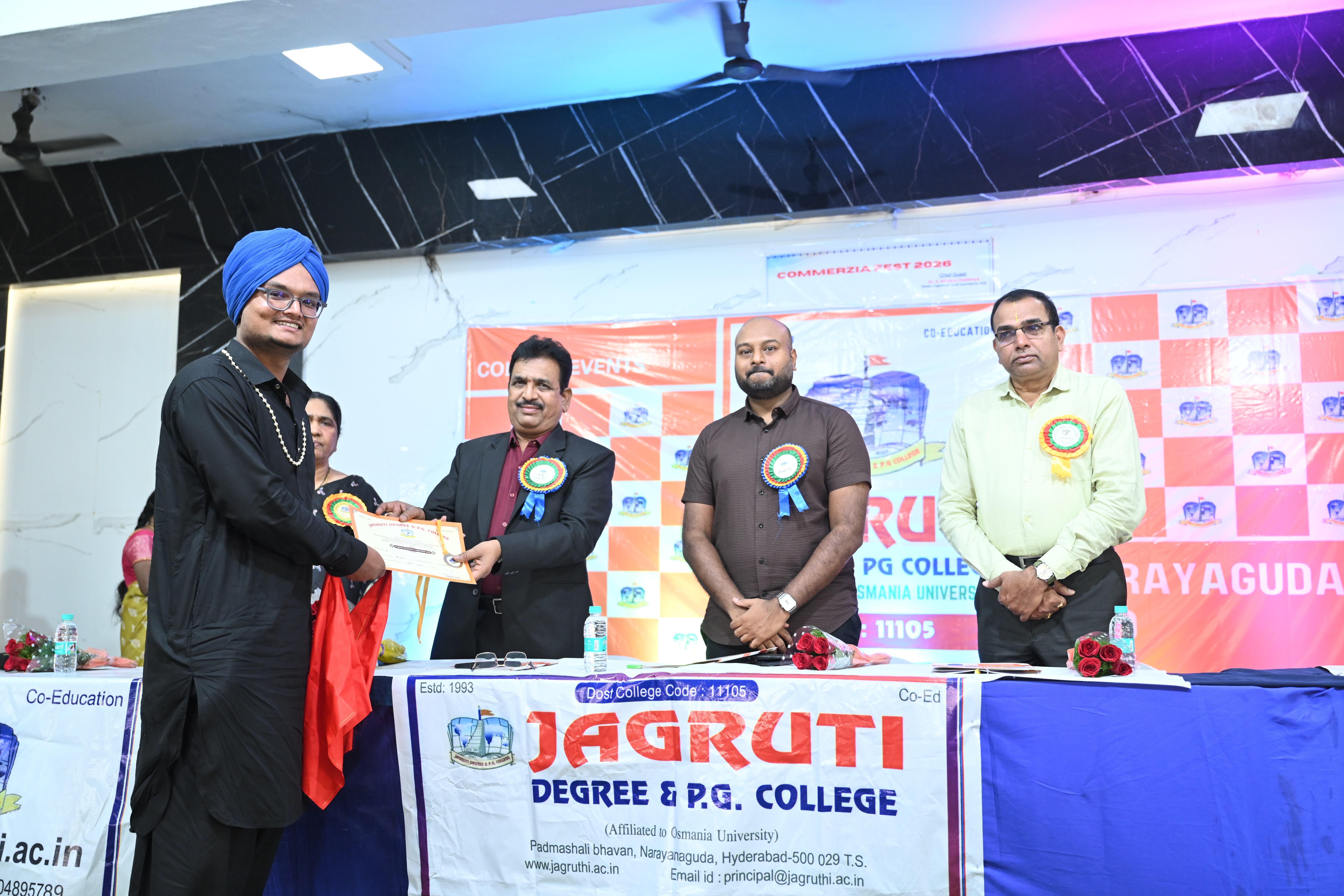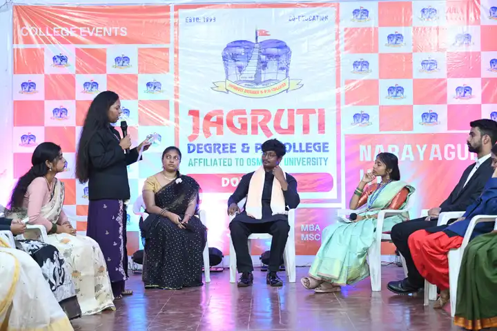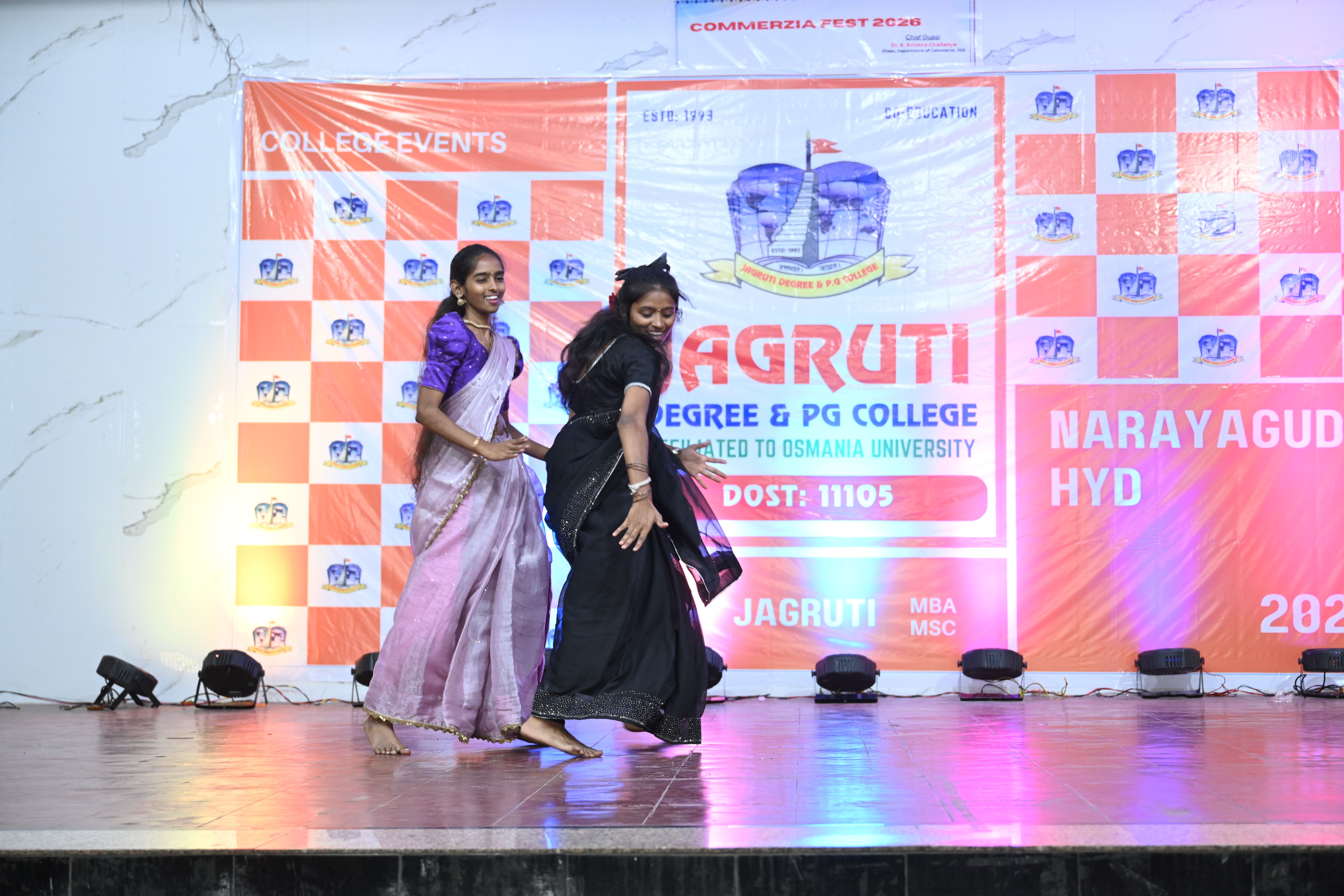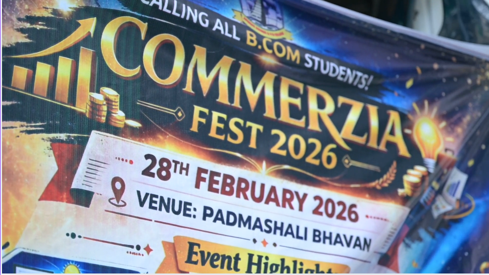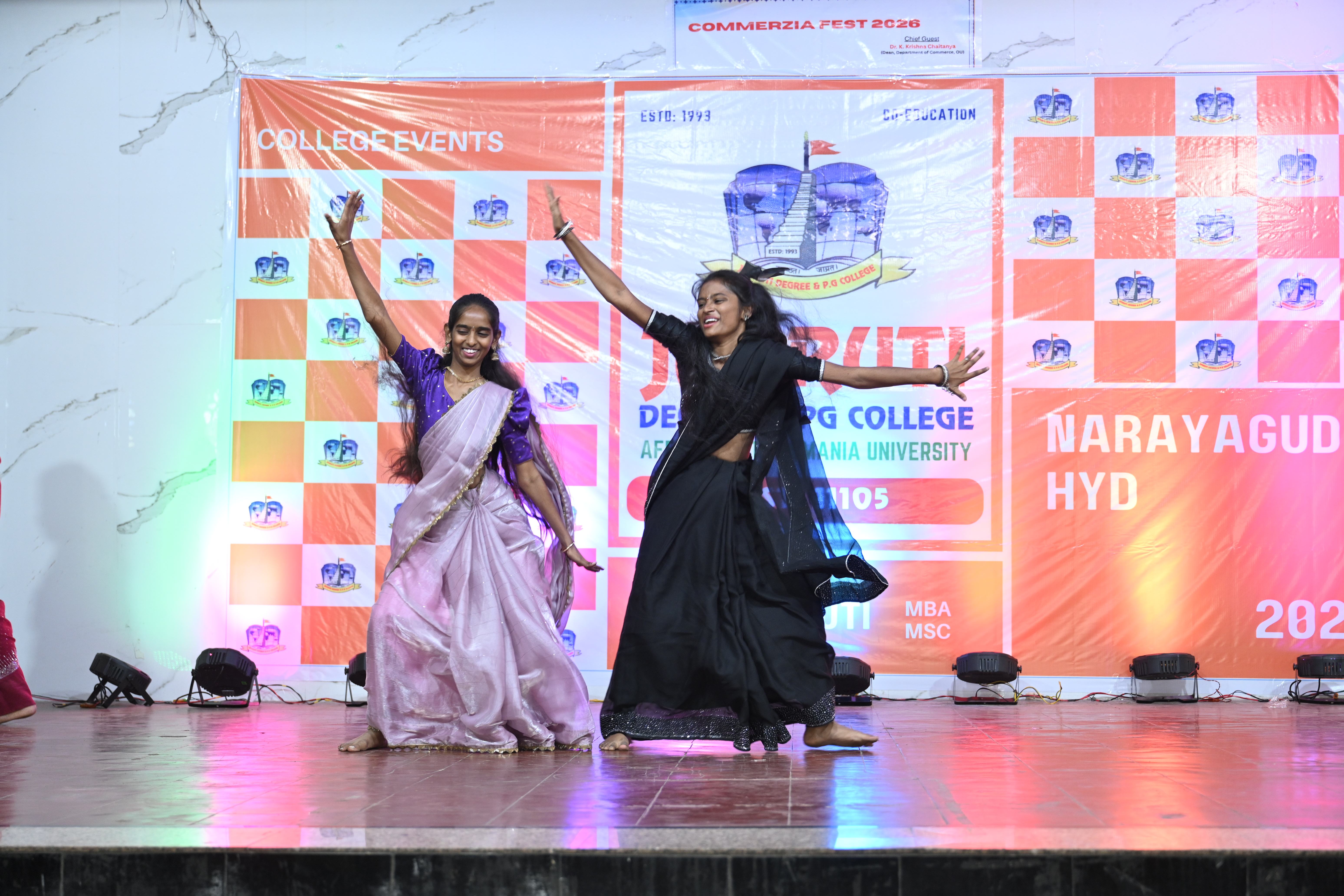 🎉 Fantastic Commerzia Fest hosted by BCom students and staff of Jagruti Degree and PG College on 28th February 2026 at Padmashali Bhavan, Narayanaguda. BCom Students have presented projects and fun activities stalls for the Chief Guest Dr. K. Krishna Chaitanya (Dean, Department of Commerce) and also performed with many dance performances and skits on real world topics.