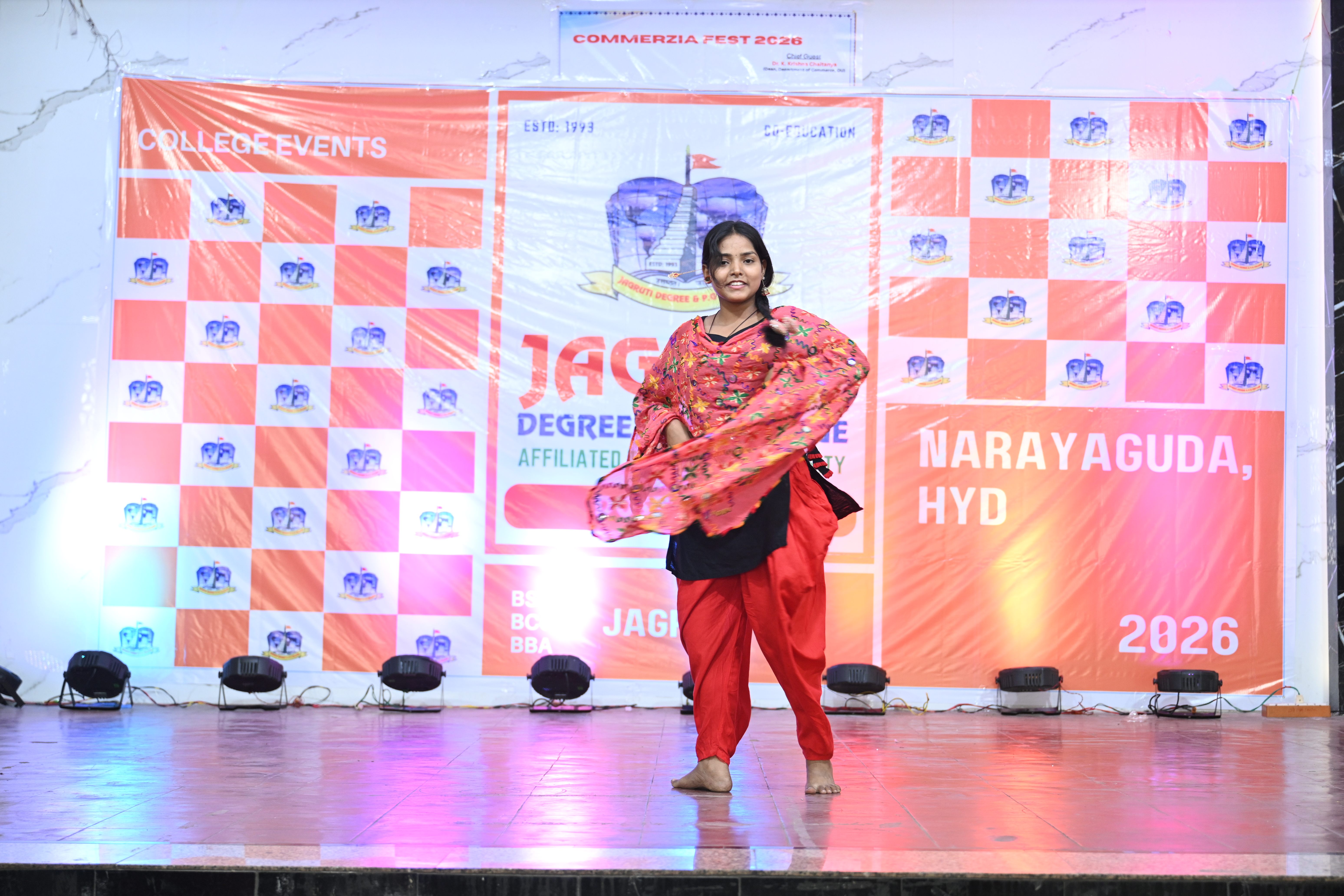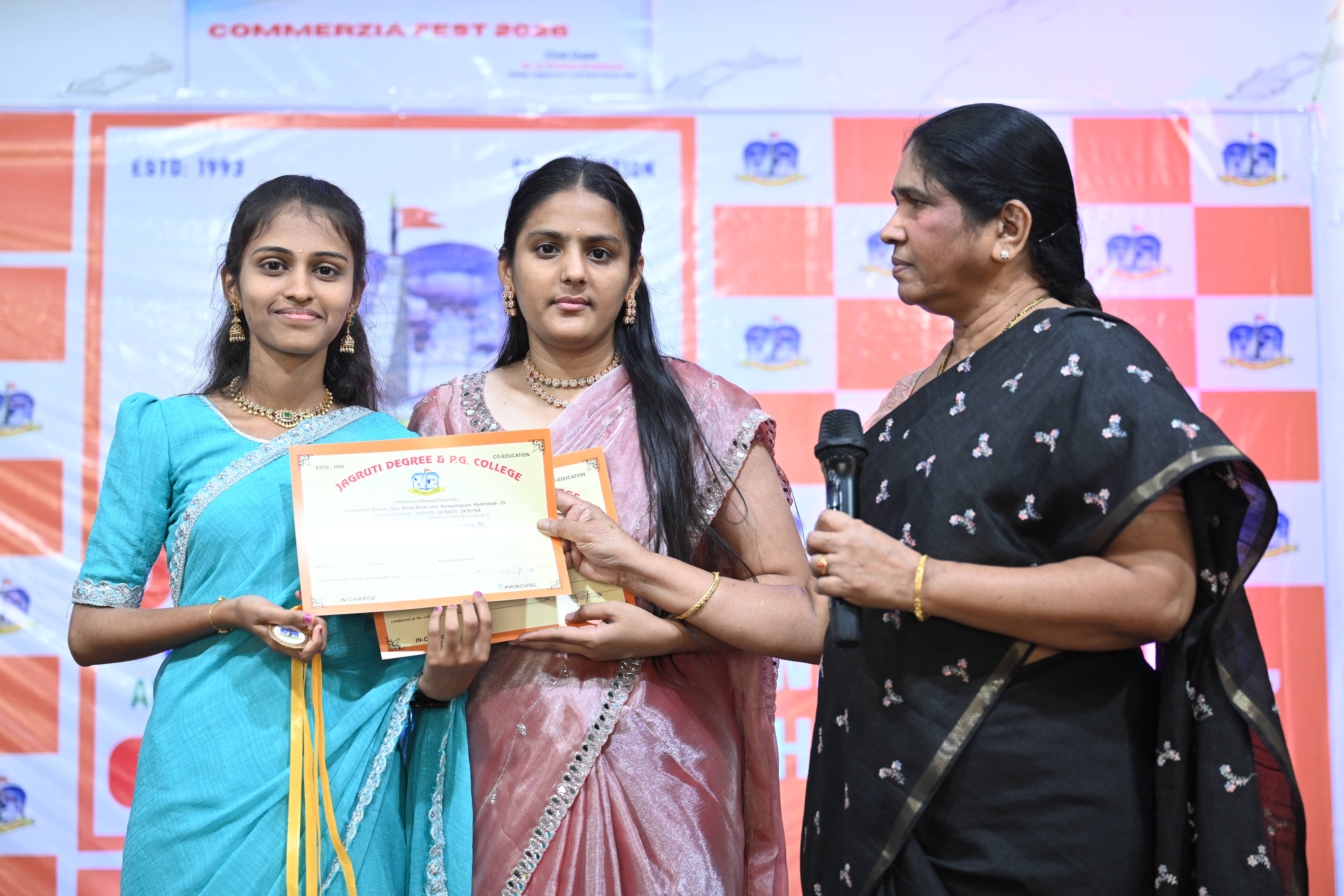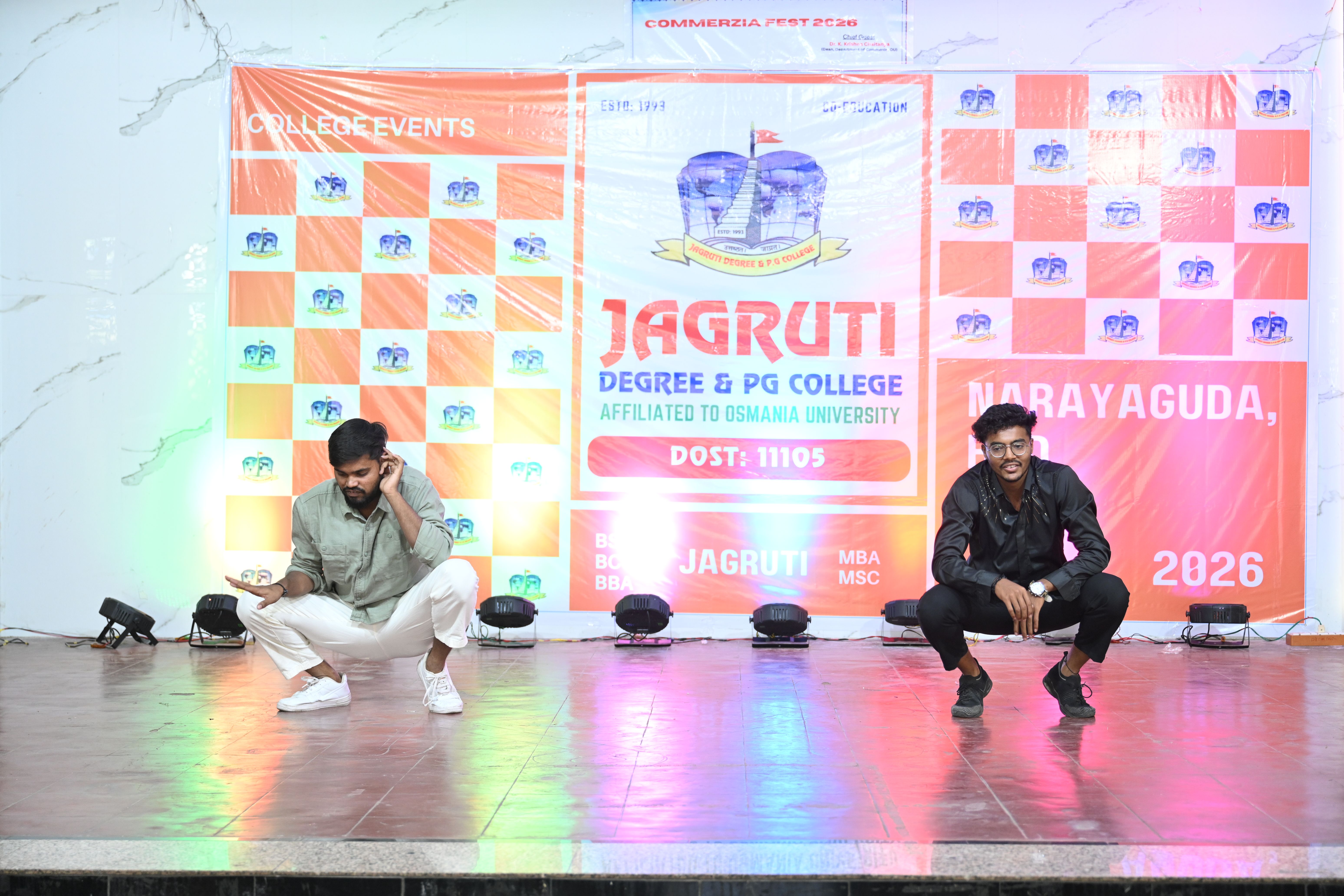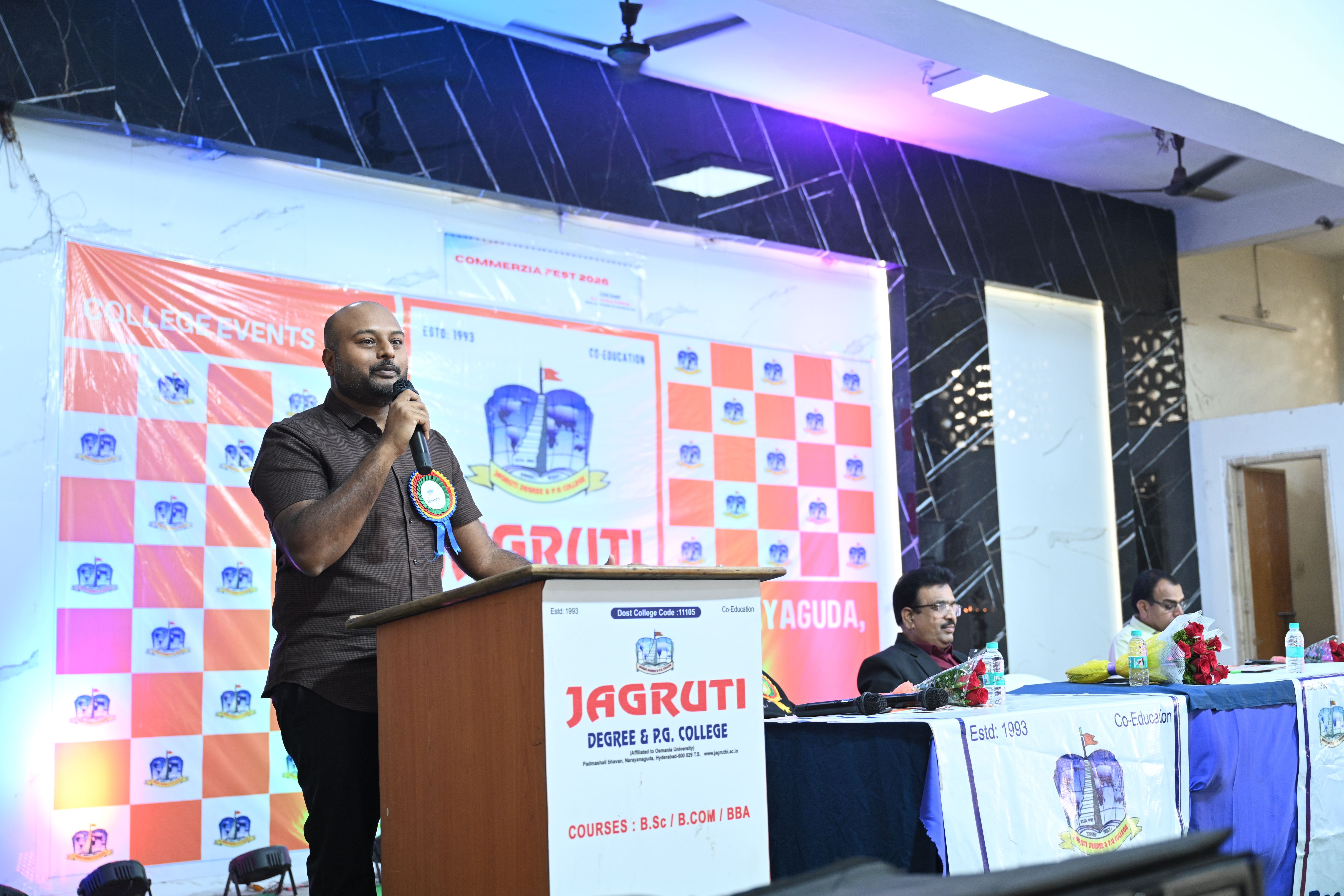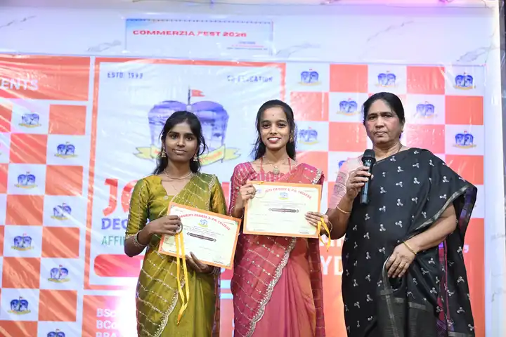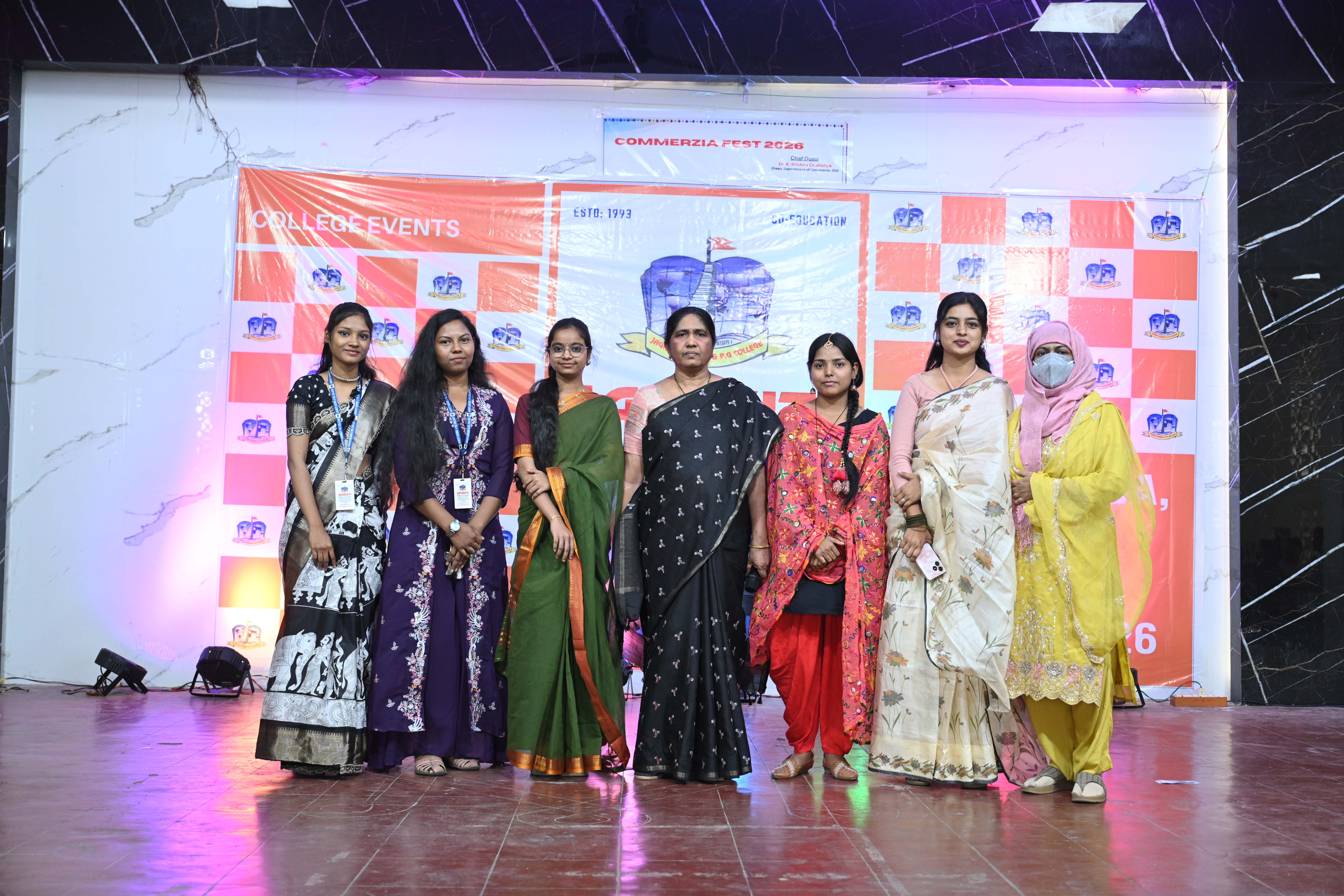 🎉 Fantastic Commerzia Fest hosted by BCom students and staff of Jagruti Degree and PG College on 28th February 2026 at Padmashali Bhavan, Narayanaguda. BCom Students have presented projects and fun activities stalls for the Chief Guest Dr. K. Krishna Chaitanya (Dean, Department of Commerce) and also performed with many dance performances and skits on real world topics.