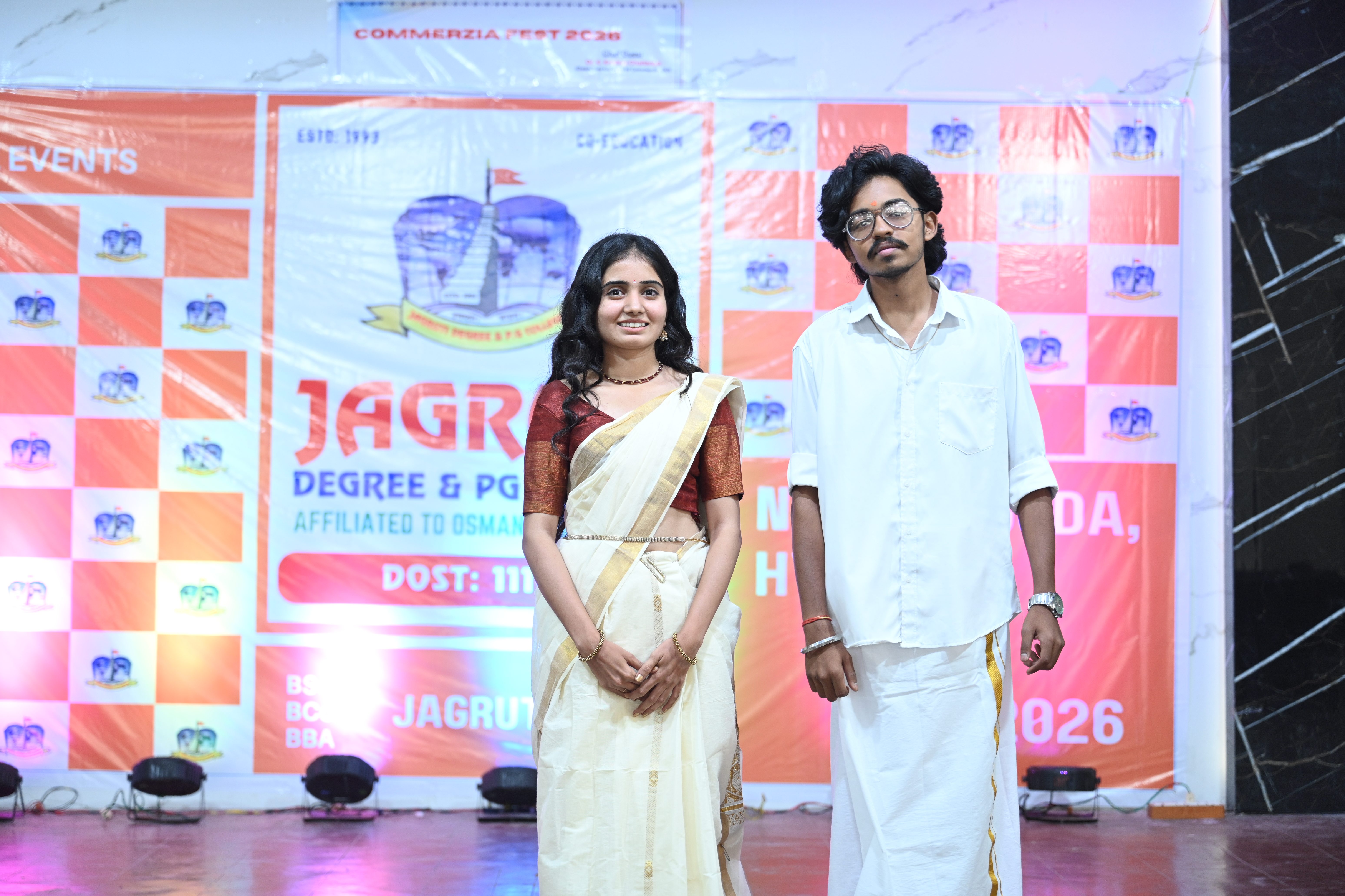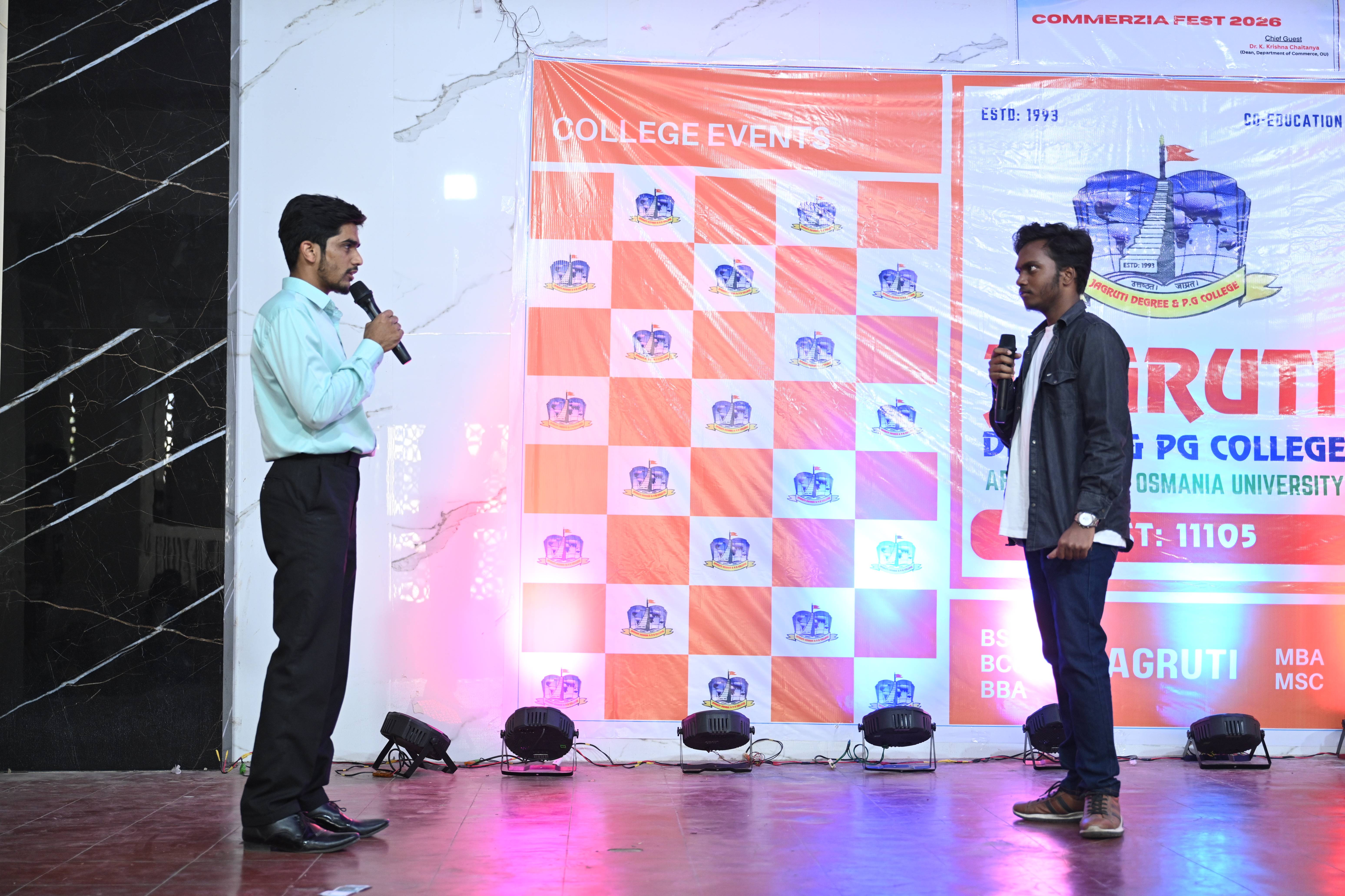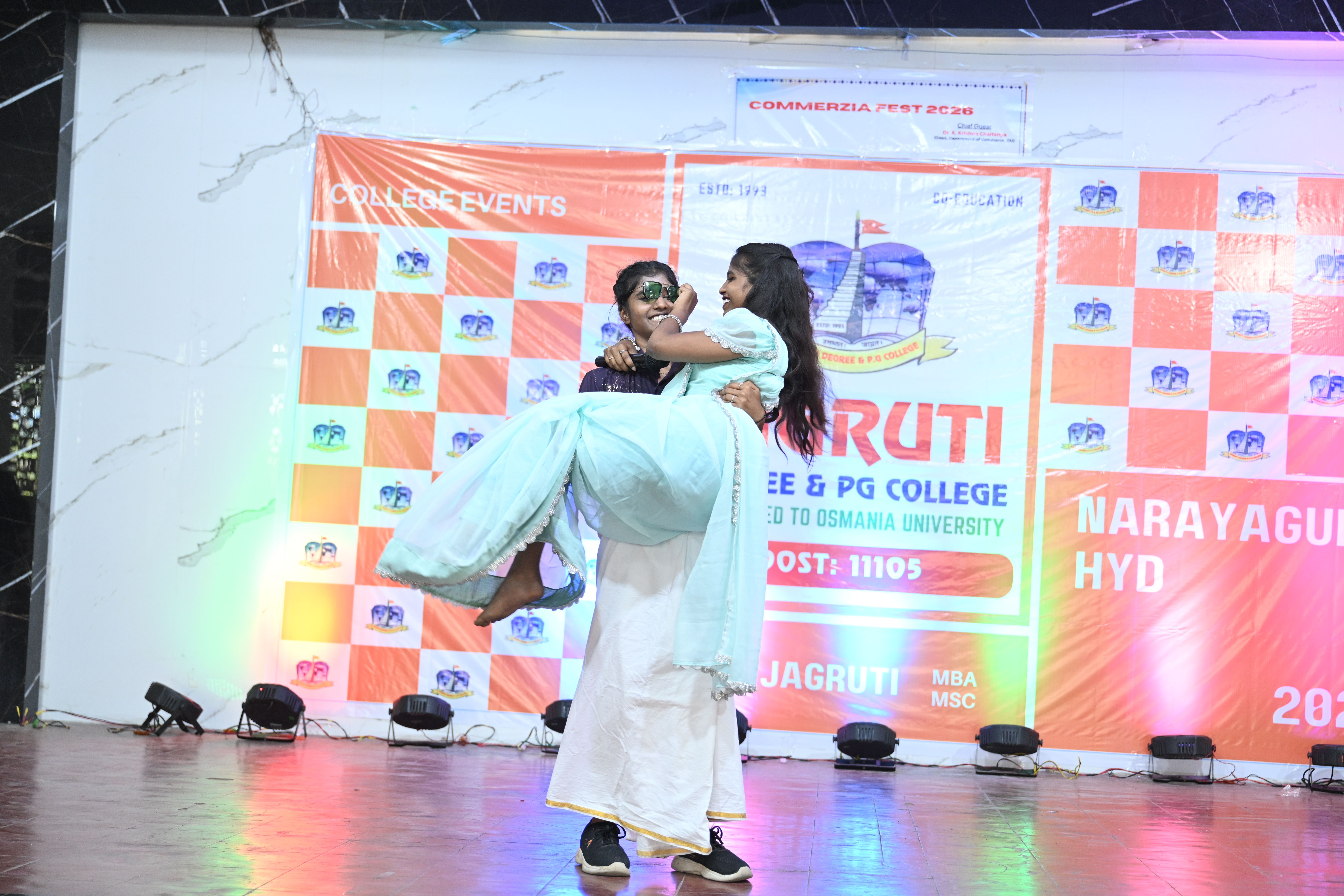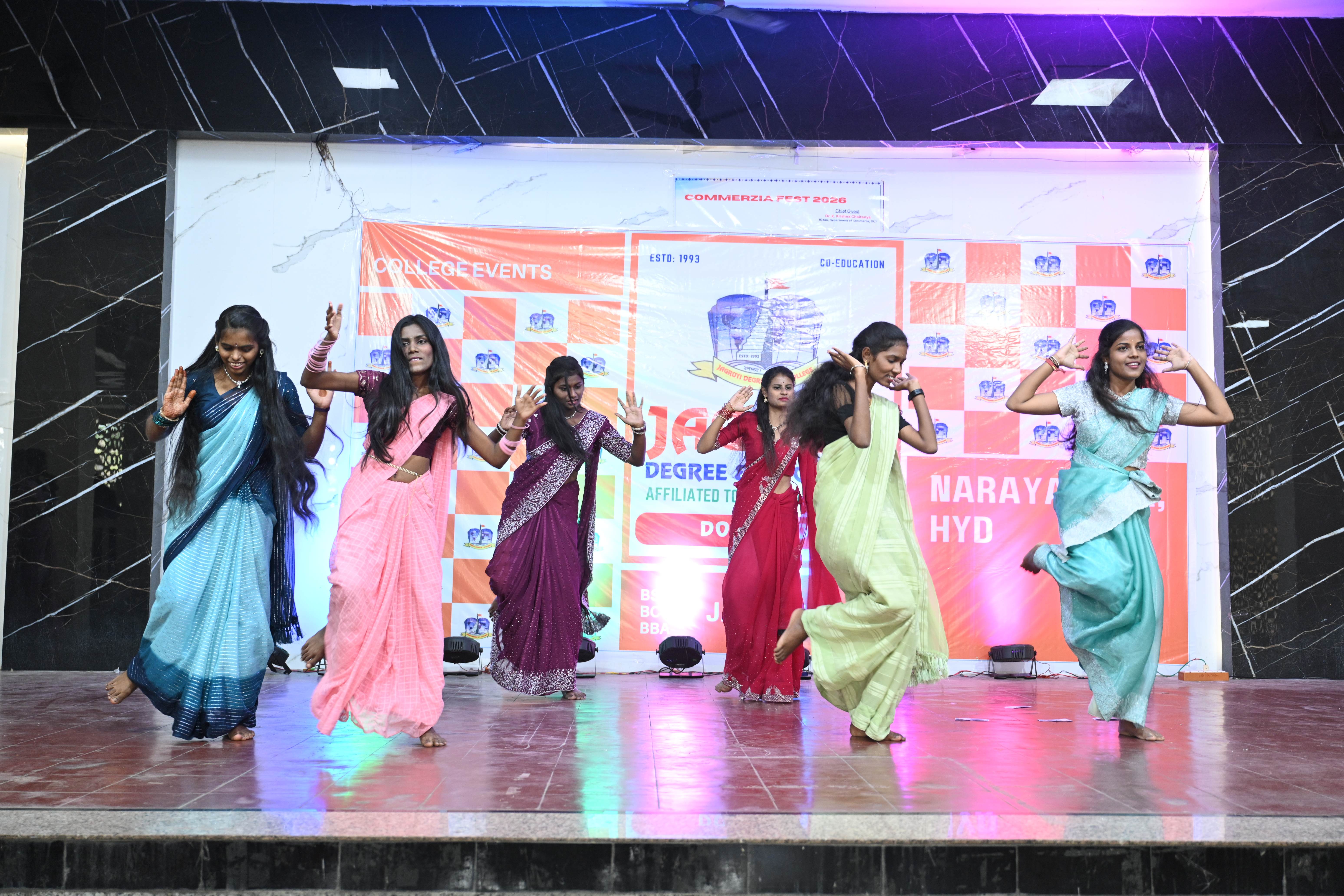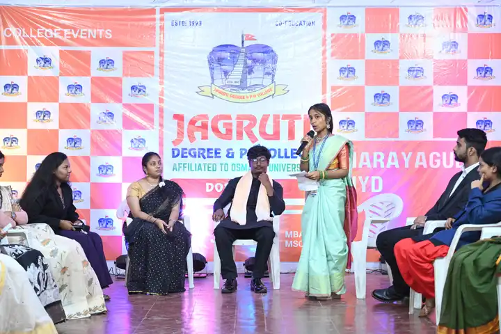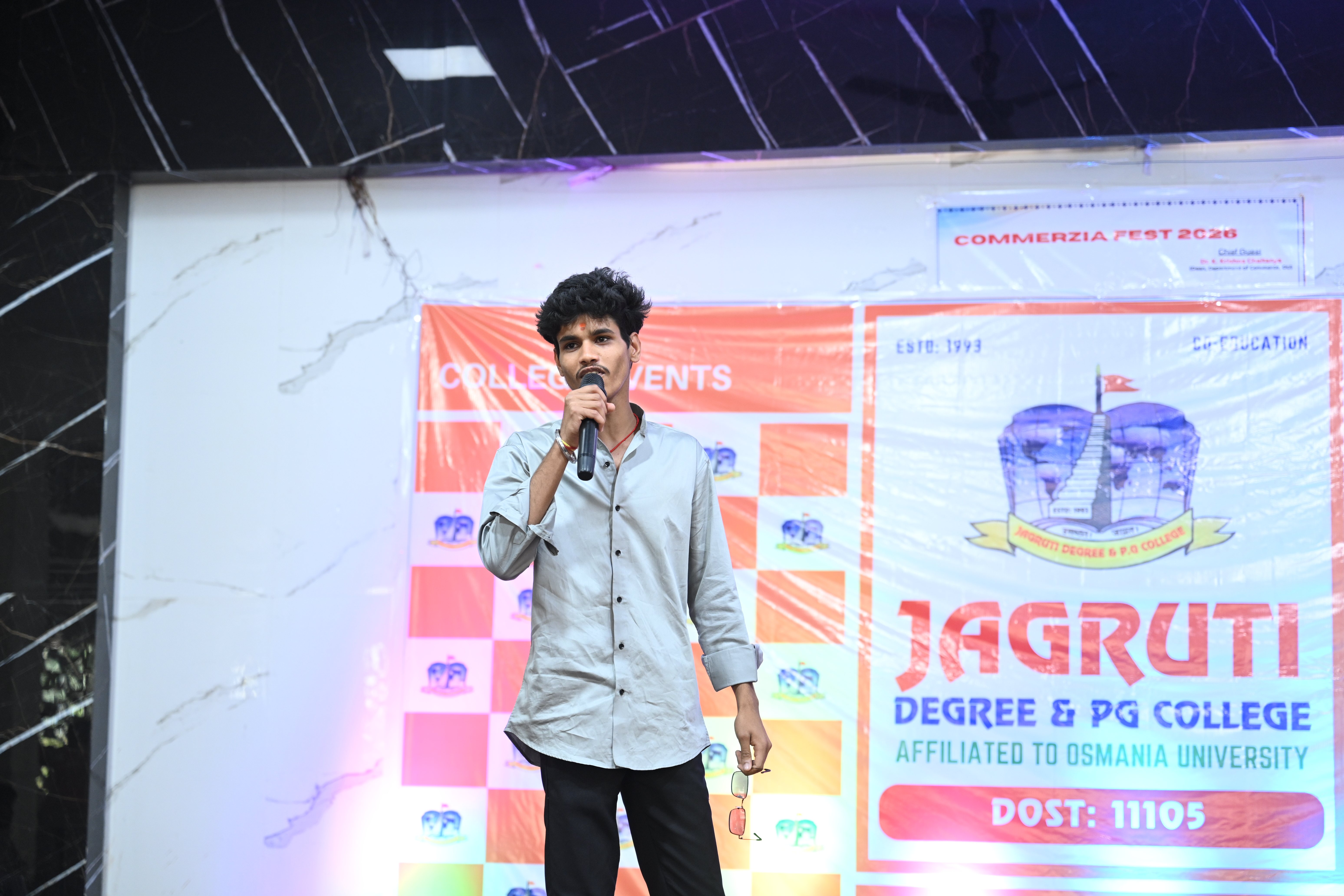 🎉 Fantastic Commerzia Fest hosted by BCom students and staff of Jagruti Degree and PG College on 28th February 2026 at Padmashali Bhavan, Narayanaguda. BCom Students have presented projects and fun activities stalls for the Chief Guest Dr. K. Krishna Chaitanya (Dean, Department of Commerce) and also performed with many dance performances and skits on real world topics.