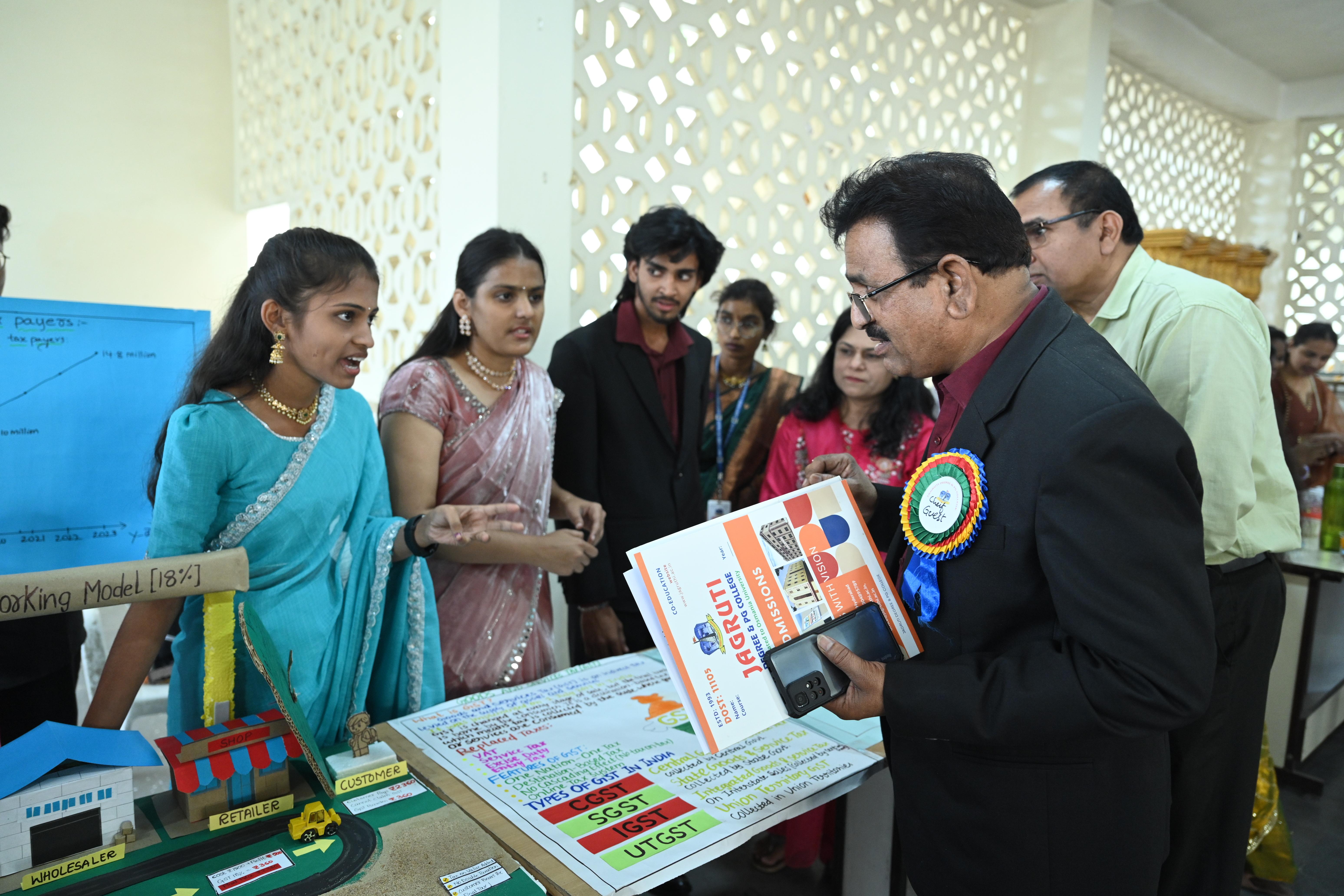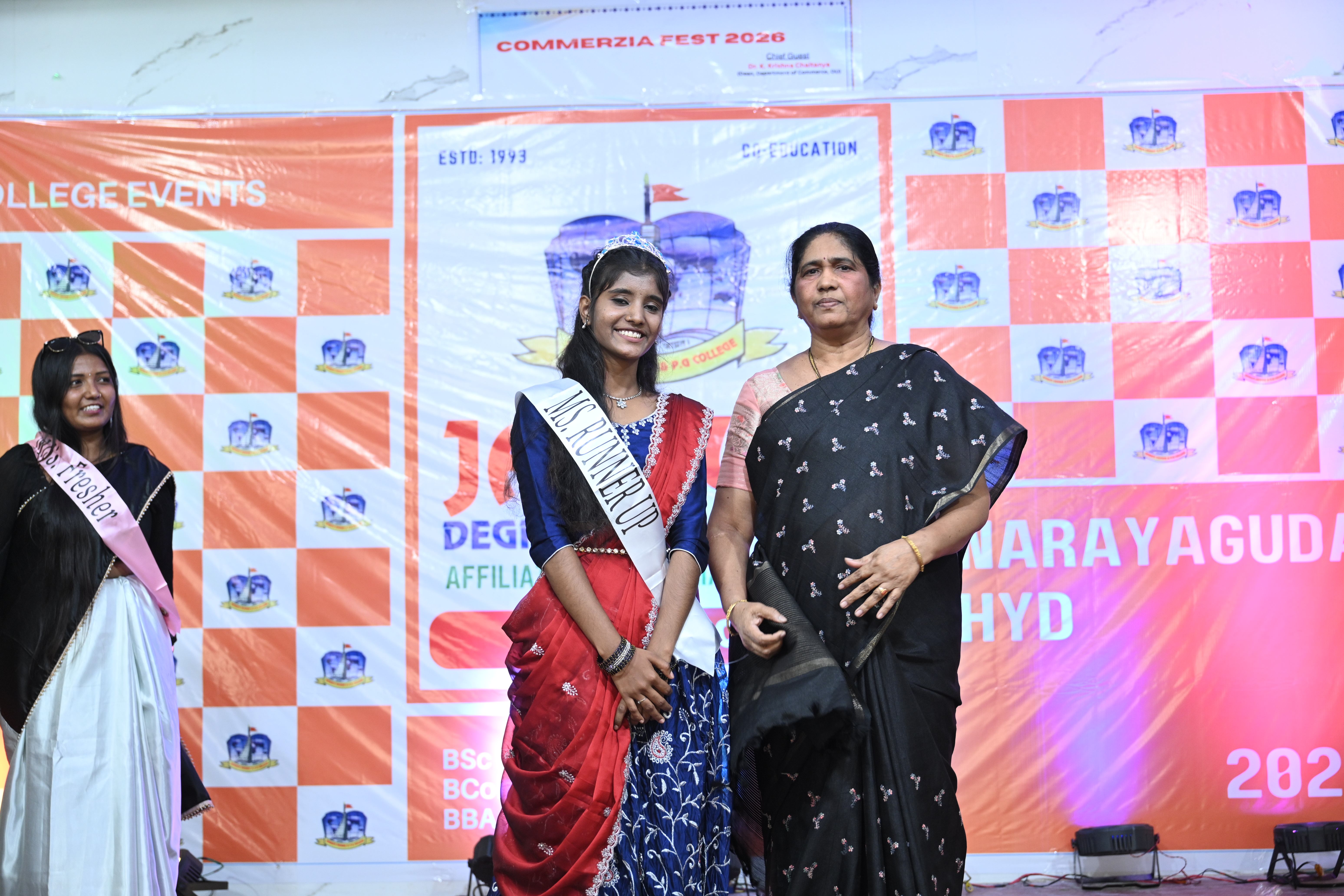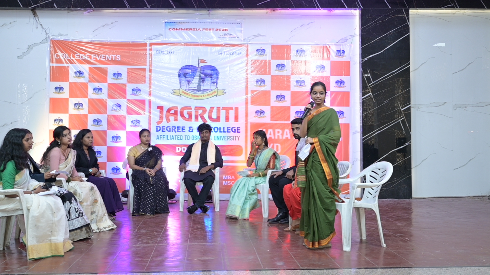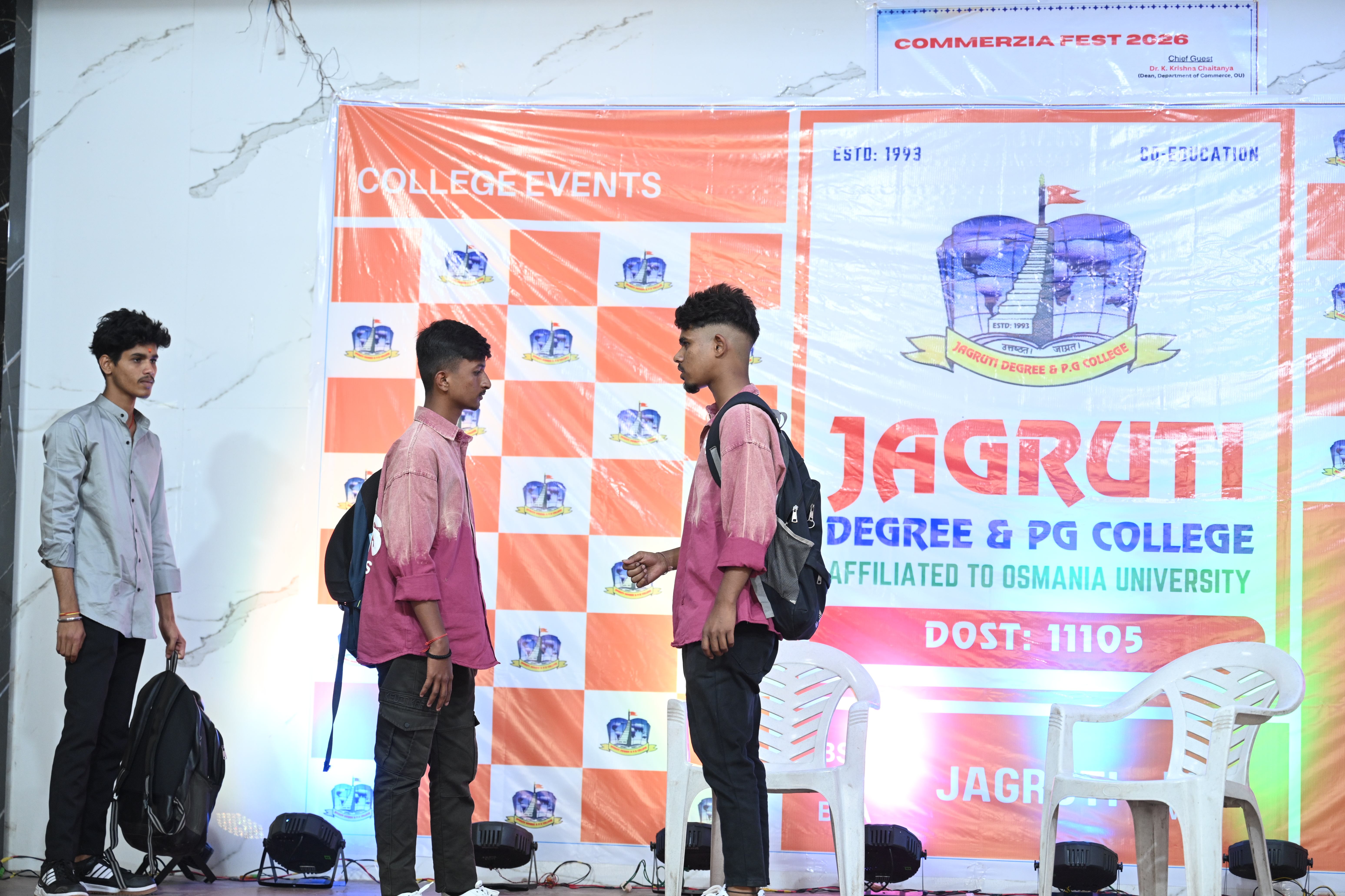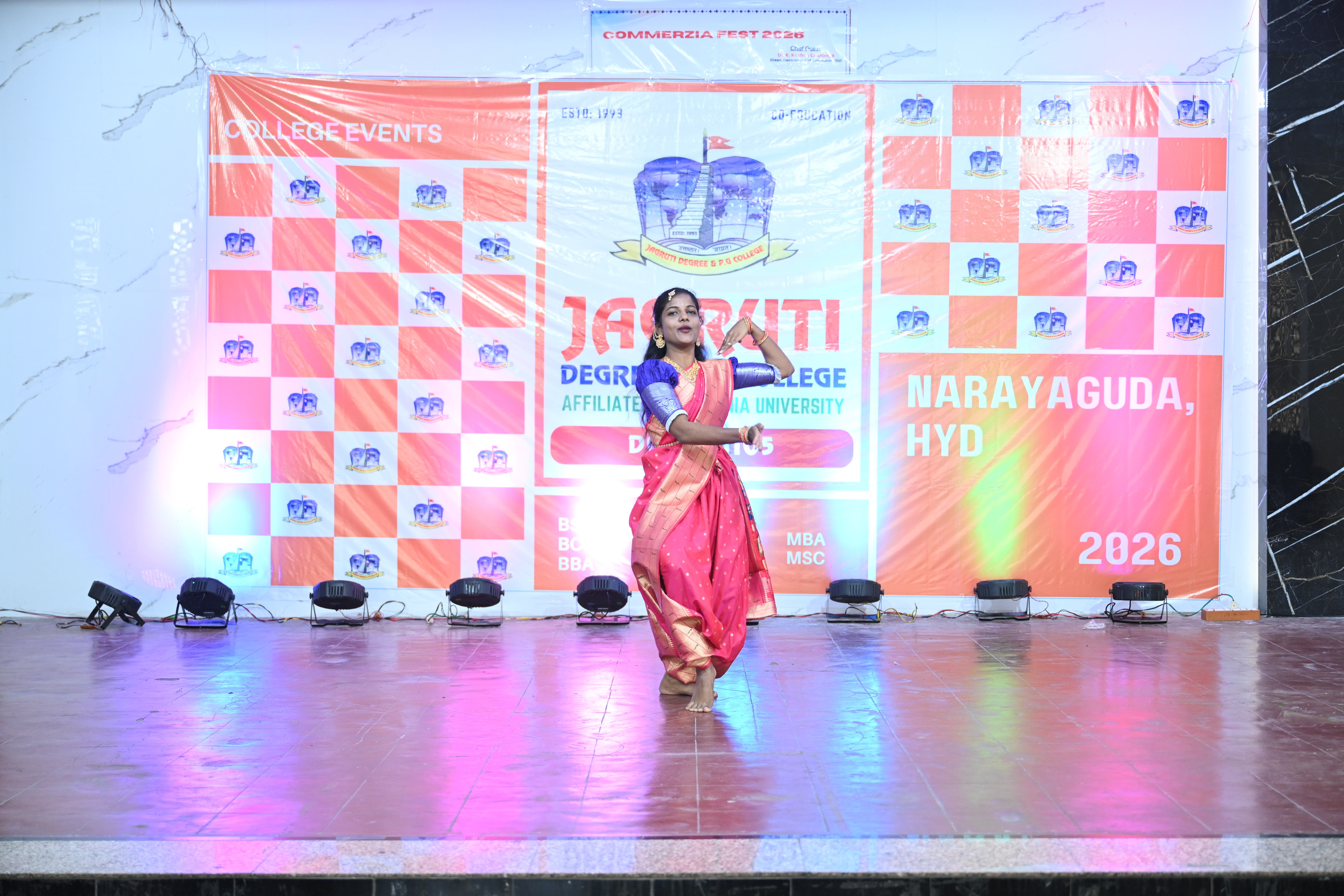🎉 Fantastic Commerzia Fest hosted by BCom students and staff of Jagruti Degree and PG College on 28th February 2026 at Padmashali Bhavan, Narayanaguda. BCom Students have presented projects and fun activities stalls for the Chief Guest Dr. K. Krishna Chaitanya (Dean, Department of Commerce) and also performed with many dance performances and skits on real world topics.