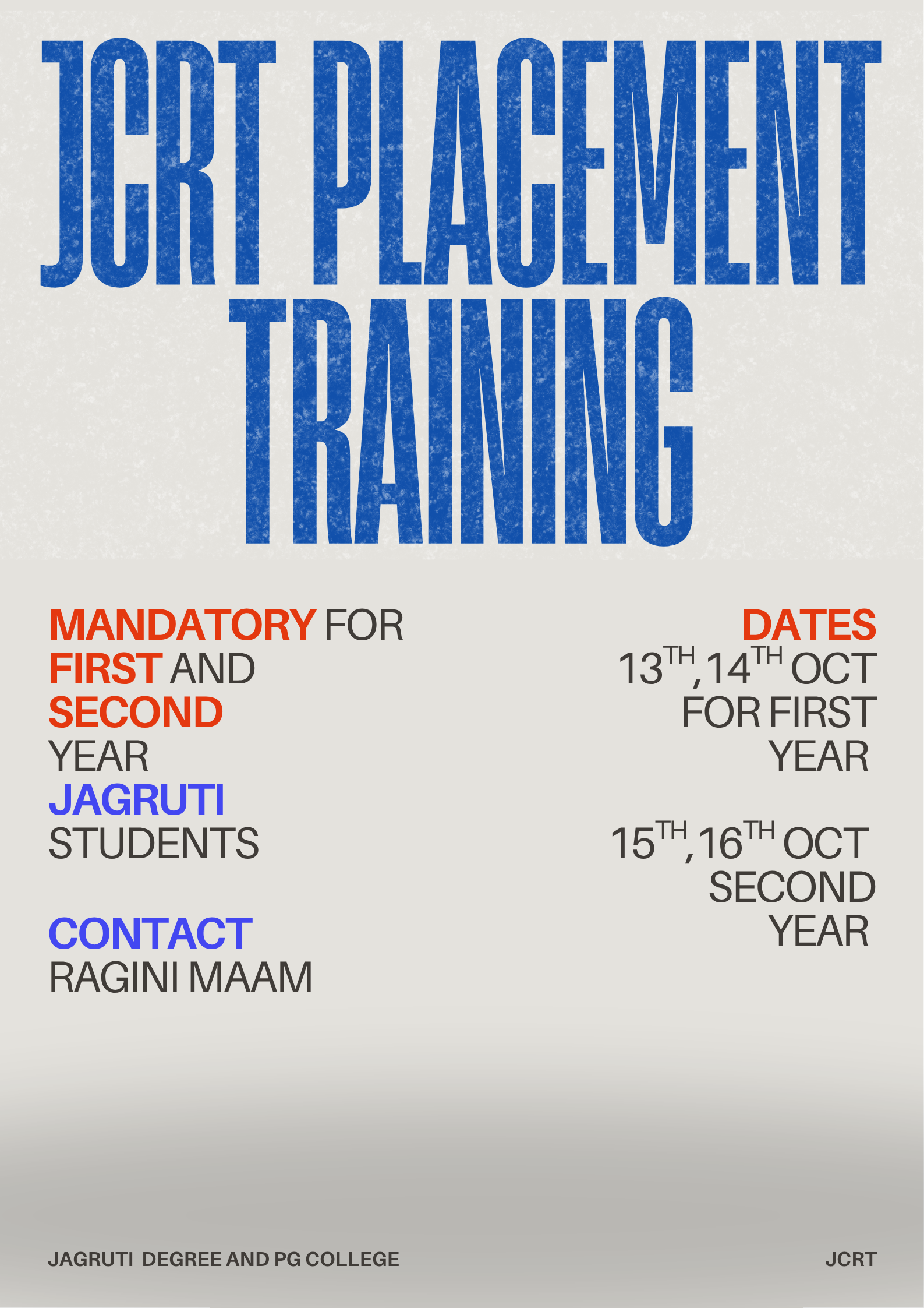 Placement Training at Jagruti Degree & PG College for Final year jagruti students will be held on this week.