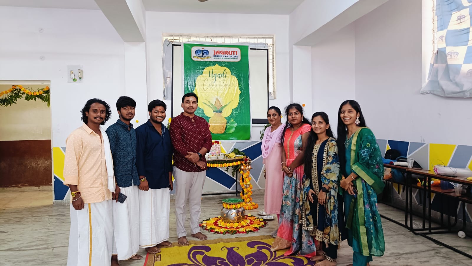 Ugadi Celebrations by B.Sc Students of Jagruti Degree and PG College. Ugadi is a traditional Hindu festival that marks the beginning of the New Year. The word “Ugadi” is derived from the Sanskrit words “Yuga” meaning age and “Adi” meaning beginning.
